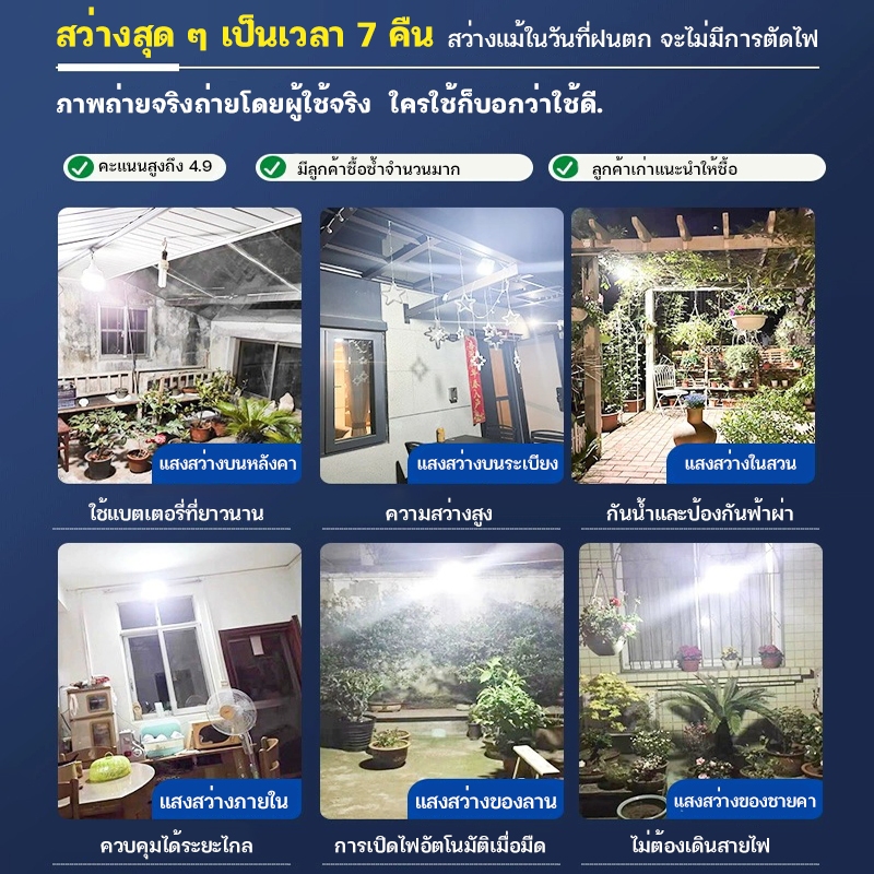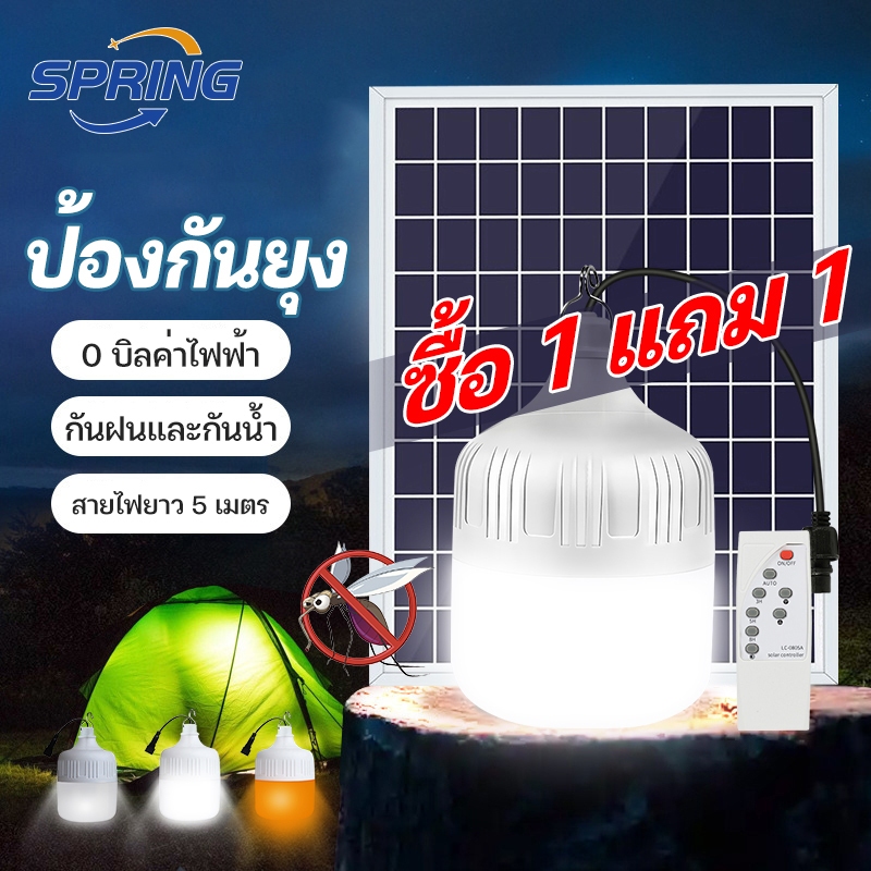 spring ซื้อ1แถม1หลอดไฟโซล่าเซลล์ LED Solar Light 8000W ไฟตั้งแคมป์ พกพา เปิด-ปิด อัตโนมัติ แบตนาน48ชั่วโม กันน้ำกลางแจ้ง