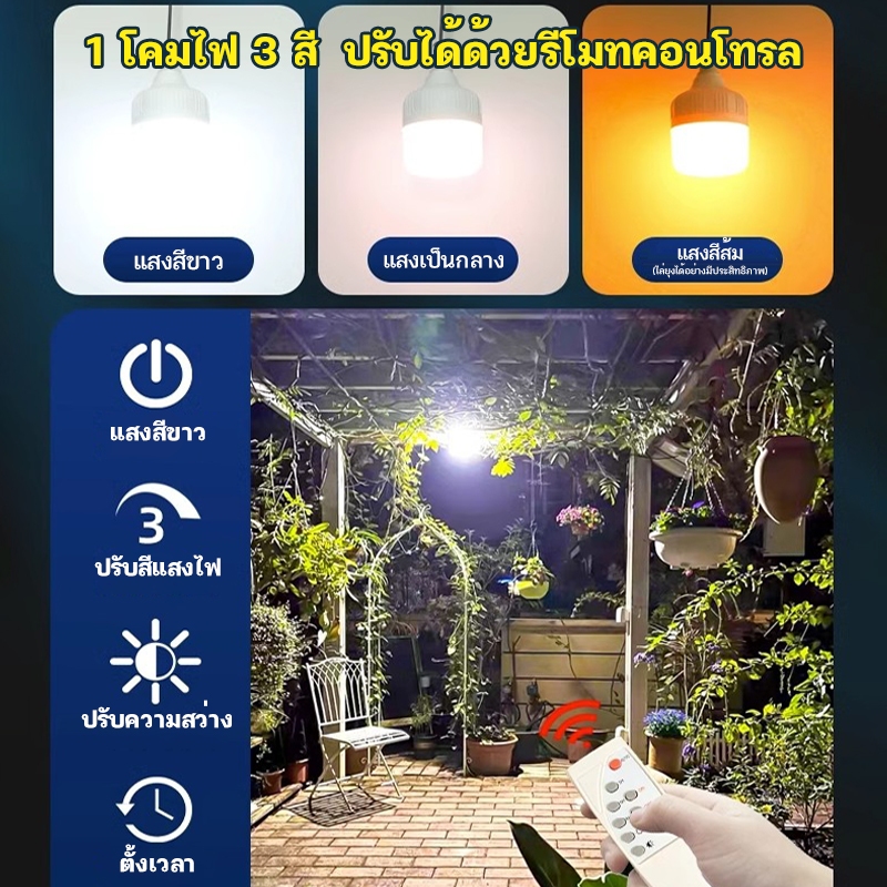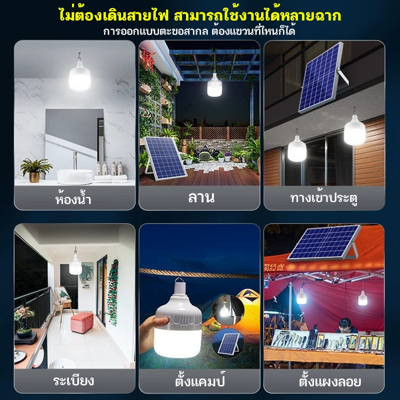 ... นาดหลอด 13.5x21cm ไฟ / ขนาดแผง 23.5x35cm จุแผง 10W 6V / แบจเตอรี่ 10000 mAh ของแท้) 10000 วัตต์ (ขนาดหลอด 15x25cm ไฟ / ขนาดแผง 29x35cm จุแผง 12W 6V / แบจเตอรี่ 12000 mAh ของแท้) ใช้งานง่าย สามารถแยกหลอดไฟ ออกมาใช้ได้ หรือ ต่อกับแผงโซล่าเซลล์ ก็ได้! - ชาร์จไฟผ่านโซล่าเซลล์ หรือ ผ่าน สาย USB ก็ได้๓ - บอดี้เป็นพลาสติกขนาดเบา ไม่แตกง่ายเมื่อทำตกหล่น ไม่ร้อนง่ายเมื่อต้องใช้งานเป็นระยะเวลานาน - เลนส์กระจายแสงชนิดแบบขุ่น milky cover ให้ความสว่างน้อยกว่าแบบใส แต่ให้ความนุ่มนวลของแสงไฟและสบายตา!มากกว่า - มุมกระจายแสงไฟ 120° - IP 20 สามารถกันละอองฝุ่ง / ละอองน้ำได้ สำหรับใช้งานติดตั้งภายในและภายนอกในบริเวณ์ที่ไม่โดนน้ำหรือความชื้น - สายไฟแผงโซล่าร์ยาว 5 เมตร - ใช้งานได้นาน 8-12 ชม - เหมาะสำหรับกิจกรรม แคมป์ปิ้ง ท่องเที่ยว ซ่อมรถยนต์หรือเครื่องจักร ไฟฟ้าดับ ไฟทางเดินในบ้าน เรือประมง สถานที่ไม่มีไฟฟ้า และงานระบบโซล่าร์เซลล์