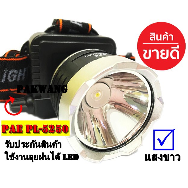 ไฟฉายคาดหัว แสงขาว ไฟฉายคาดศรีษะ ไฟส่องกบ แบตลิเทียม สวิตช์แบบหมุน หน้าโคมกว้าง 4 ซม PL PAE PL-5250 LED