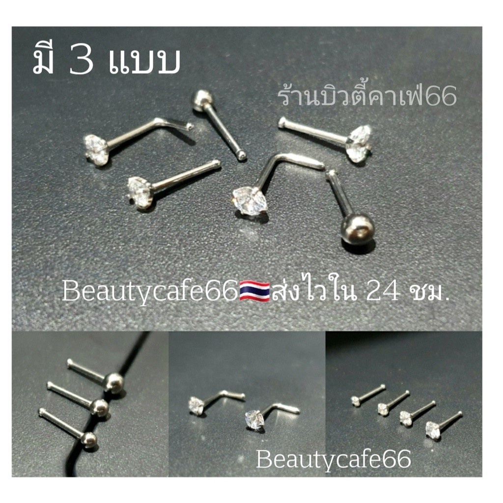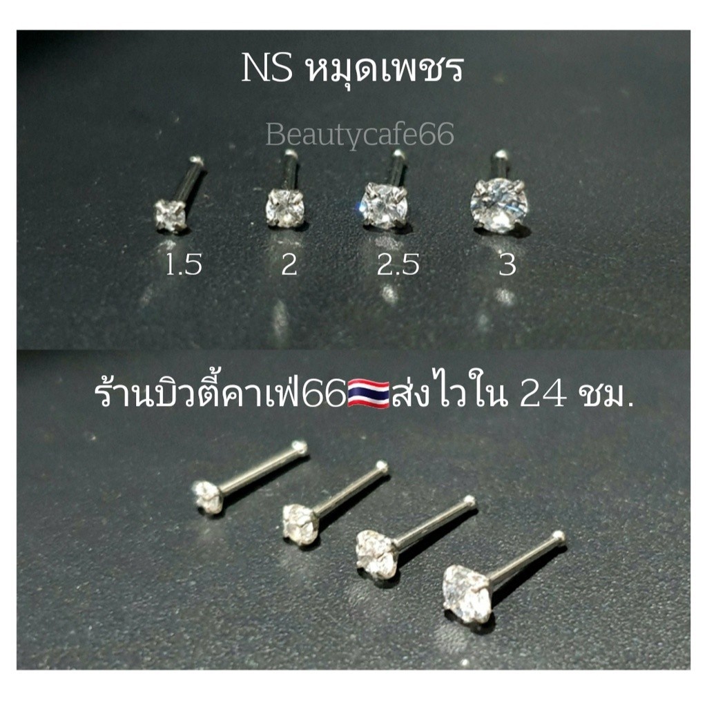 NS จิวจมูก จิวเพชร หมุดเงิน Stainless 316L (1pc.) ไม่เป็นสนิม Nose Stud แบบเพชร แบบหมุดเกลี้ยง พร้อมส่งจากไทย ราคาขายต่อ 1 ชิ้น วัสดุ สแตนเลสแท้ ไม่ระคายเคือง ปลอดภัย100% (ถ้าแพ้สแตนเลสแนะนำดูรุ่นที่ทำจากเงินแท้นะคะ) ก้าน 1.2 mm ยาว 7 mm. ขนาดมาตรฐาน ใส่พอดี มีตุ่มตรงปลายก้าน ก