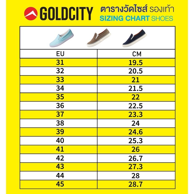 ... นและมีคุณภาพ เพื่อให้ทุกคนได้ใส่รองเท้าดีๆ ในราคาที่เข้าถึงได้ ปัจจุบันมีการออกแบบและจำหน่ายรองเท้าผ้าใบแฟชั่นออกมาจำหน่าย ยังคงเป้าหมายเดิม รองเท้าคุณภาพดี ราคาถูก เข้าถึงได้ง่าย คุณสมบัติเด่นของ GOLDCITY: -ผลิตจากวัสดุคุณภาพสูง ใส่ทนทาน -พื้นรองเท้านุ่ม สวมใส่สบายตลอดวัน -น้ำหนักเบา ออกแบบเพื่อการใช้งานประจำวัน -ดีไซน์ทันสมัย เหมาะกับทุกเพศทุกวัย โกลด์ซิตี้ (GOLDCITY)ไม่ได้เป็นเพียงแค่รองเท้า แต่เป็นมรดกที่ส่งต่อความใส่ใจในคุณภาพและการดูแลทุกย่างก้าวของผู้สวมใส่ ด้วยประวัติอันยาวนานกว่า 70 ปี เรามุ่งมั่นที่จะทำให้คุณรู้สึกมั่นใจในทุกครั้งที่ก้าวไปข้างหน้า ทำไมต้อง GOLDCITY? เราคือแบรนด์ที่มีประวัติยาวนานและมุ่งเน้นการพัฒนารองเท้าที่มีคุณภาพสูง พร้อมให้คุณมั่นใจในทุกย่างก้าว #รองเท้าGOLDCITY #รองเท้าคุณภาพ #รองเท้าใส่สบาย #รองเท้าเด็ก #รองเท้าราคาถูก #รองเท้าแฟชั่น" #รองเท้าสลิปออน #รองเท้านักเรียน เงื่อนไขการรับเคลมสินค้า 1.ก่อนแกะกล่องสินค้า ต้องถ่ายคลิปวีดีโอ ใบปะหน้ากล่องสินค้าให้เห็นชื่อลูกค้า ที่อยู่ ขณะแกะกล่องสินค้า และสินค้าที่แพ็คในกล่องสินค้า โดยไม่ตัดต่อ และถ่ายต่อเนื่องในคลิปเดียวจบ 2.หากพบว่ากล่องสินค้าชำรุด ฉีกขาด ให้ถ่ายมุมของกล่องสินค้าไว้เป็นหลักฐานก่อนแกะ 3.เมื่อพบปัญหา สินค้าไม่ครบ ส่งผิด ให้ลูกค้าส่งคลิปหลักฐานและแจ้งเลขที่สั่งซื้อให้แอดมินร้าน ทางแอดมินร้านจะติดต่อประสานงานและแก้ไขปัญหาภายใน วันทำการ1วันทำการ 4. สินค้าใส่ไม่ได้สามารถเปลี่ยนได้เพียงบางรุ่นเท่านั้น เนื่องจากสินค้าบางรายการอาจจะหมดได้ ทักแชทสอบถามแอดมินได้เลยค่ะ (การเปลี่ยนสินค้ามีค่าจัดส่ง) 5. ขออนุญาตปิดกั้นผู้ซื้อที่มีพฤติกรรมไม่เหมาะสม เช่น สั่งสินค้าแล้วปฏิเสธการรับสิน้คา การกระทำหรือข้อความใดใดอันเป็นเท็จเป็นเหตุที่ทางร้านได้รับความเสียหาย 6. กรณีต้องการเปลี่ยนแปลงรายการใดใด หากทางร้านยังไม่ได้ดำเนินการแพ็คสินค้าสามารถสามารถยกเลิกและสั่งสินค้าเข้ามาใหม่ได้เลย 7. ทางร้านไม่สามารถ แก้ไขข้อมูลส่วนบุคคลให้กับลูกค้าได้ แนะนำติดต่อ SHOPEE โดยตรง หรือกดยกเลิกและสั่งเข้ามาใหม่ 8. ทางร้านขอสงวนสิทธิ์ในการยกเลิกสินค้ากรณีที่ทางร้านดำเนินการแพ็คสินค้าแล้ว กรณีไม่รับเคลม/คืนสินค้า 1.แจ้งเคลมสินค้า โดยไม่มีคลิปประกอบ ตามเงื่อนไขที่กำหนด 2.สินค้าที่ผ่านการใช้งานแล้วไม่รับเครม ทุกกรณี 3.สินค้าราคาพิเศษ ไม่สามารถเครม หรือคืนสินค้าได้ทุกกรณี 4. เงื่อนไขเป็นไปตามที่บริษัทกำหนด สอบถามข้อมูลเพิ่มเติม Customer Servi