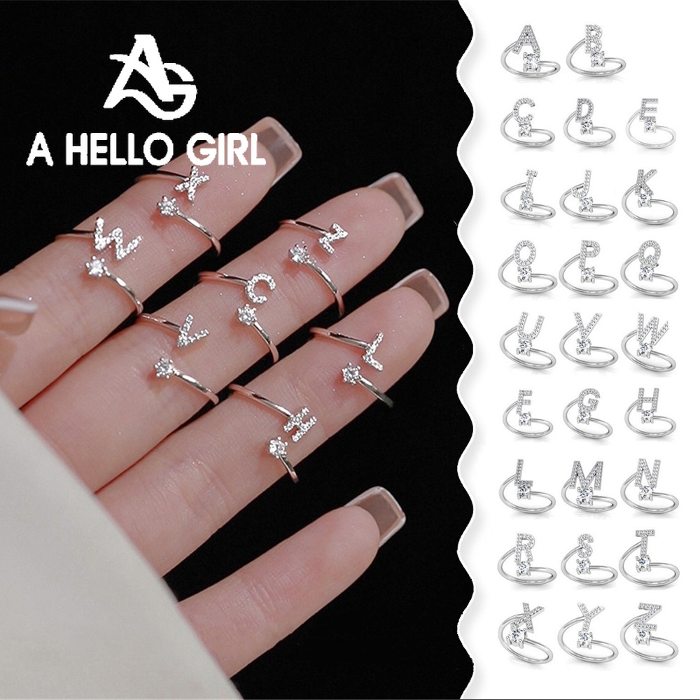 A HELLO GIRL แหวนนิ้วมือ เปิดพลอยเทียม 925 ลายตัวอักษร 26 ตัว ปรับได้ สําหรับผู้หญิง