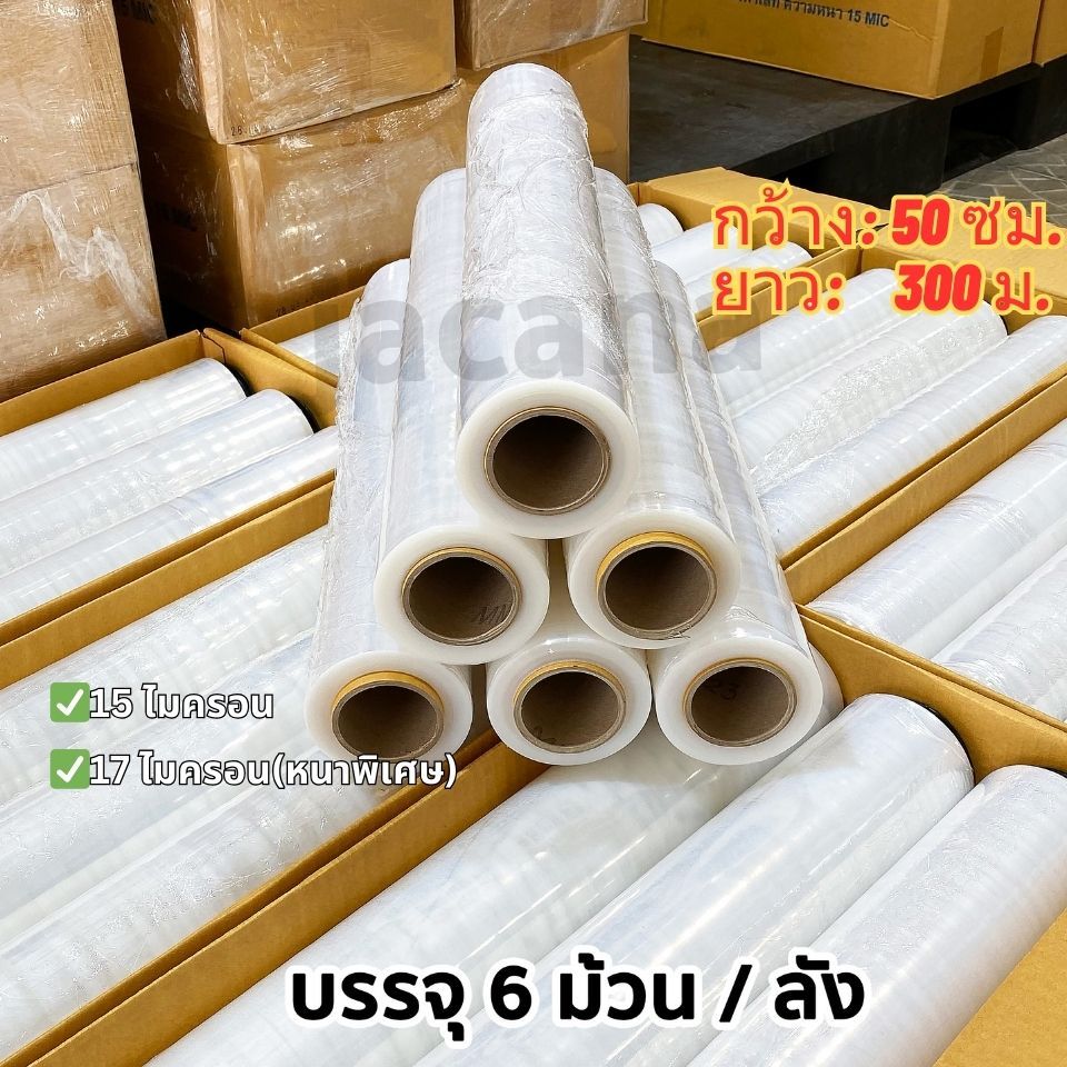 [1ลัง/6ม้วน] ฟิล์มยืดพันพาเลท มี 15และ17 ไมครอน ยาว 300 เมตร