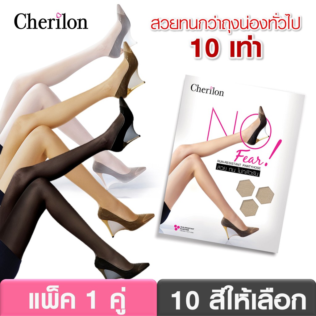Cherilon ถุงน่อง NOFEAR สวยทนกว่าทั่วไป10เท่า นุ่ม เนียนใส กระชับ ไม่รัน (1 คู่) NSA-NOFEAR