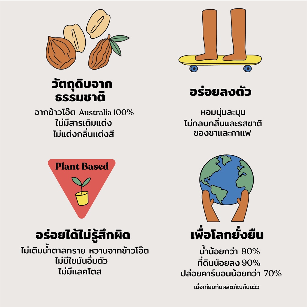 ... าวโอ๊ตคั่ว - ไม่มีวัตถุกันเสีย - เหมาะสำหรับคนทานเจ Vegan หรือ มังสวิรัติ - ไม่มี Lactose ย่อยง่าย สบายท้อง - ไม่มีสารก่อให้เกิดภูมิแพ้ เหมาะสำหรับทุกเพศ ทุกวัย: เด็ก ผู้ใหญ่ และผู้สูงอายุ - แหล่งของแคลเซียม และ ไฟเบอร์ - เบต้ากลูแคน: มีคุณสมบัติในการช่วยเสริมสร้างภูมิคุ้มกันให้กับร่างกาย - ไม่มีคอเลสเตอรอล *เขย่าก่อนดื่ม และยิ่งแช่เย็นยิ่งอร่อย *เก็บในที่แห้งและเย็น หลีกเลี่ยงแสงแดด *เมื่อเปิดกล่องแล้ว โปรดเก็บในตู้เย็นอุณหภูมิต่ำกว่า 4 องศาเซลเซียส และ บริโภคให้หมดภายใน 5 วัน"