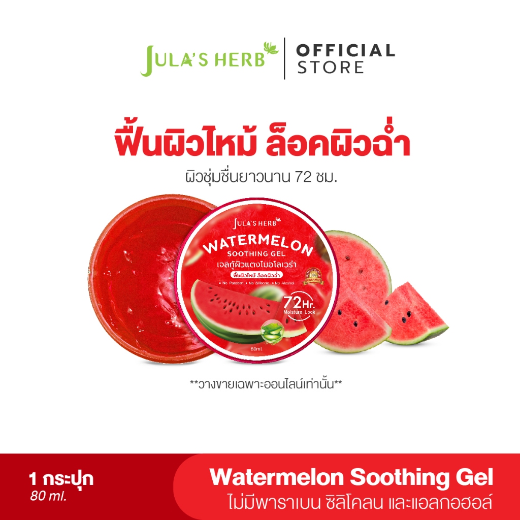 [ฟื้นฟูผิวไหม้แดด]เจลกู้ผิวแตงโมอโลเวร่า JULA'S HERB WATERMELON SOOTHING GEL 80 g 1 กระปุก