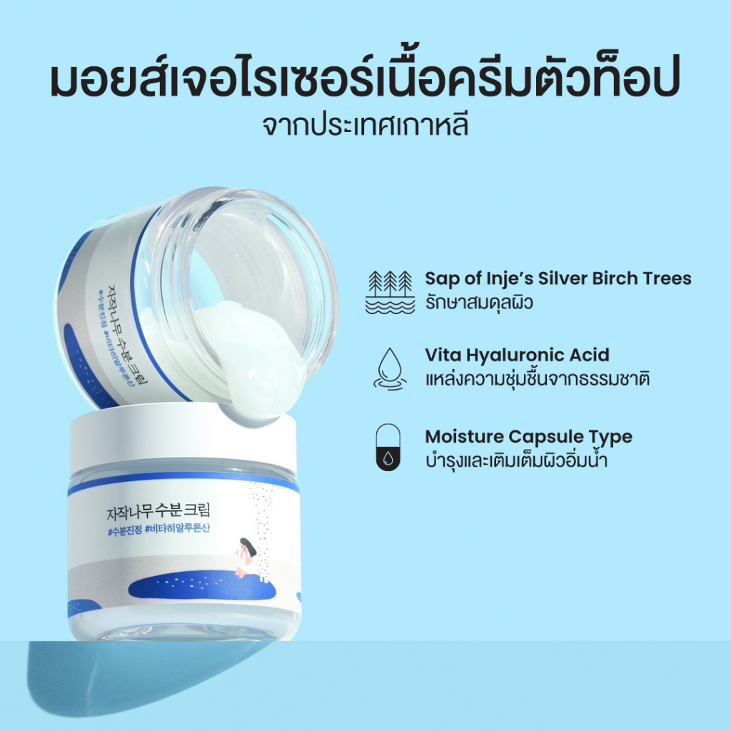 Birch Juice Moisturizing Cream 80ml มอยซ์เจอไรเซอร์เนื้อครีมตัวท็อปจาก Round Lab ด้วยสารสกัดหลักจาก Birch Juice และ Vita Hyaluronic Acid ช่วยเติมและล็อคความชุ่มชื้นบนผิวยาวนานถึง 48 ชั่วโมง 🌲บำรุงและเติมความชุ่มชื้นให้ผิวอย่างล้ำลึก ช่วยกักเก็บน้ำไว้บนผิวและสร้างเกราะป้องกันการสูญเสียความชุ่มชื้น