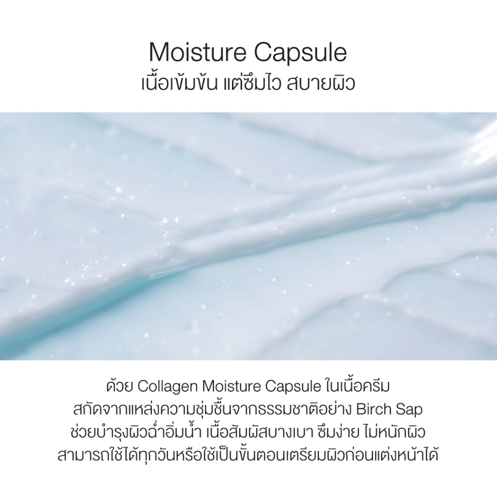 ... 🌲ดูแลผิวแห้งขาดน้ำ พร้อมช่วยลดความมันส่วนเกินบนผิวหน้า ซึ่งเป็นสาเหตุของการอุดตันและเกิดสิว 🌲อัดแน่นไปด้วย Collagen Moisture Capsule ช่วยนำพาความชุ่มชื้นเข้าสู่ผิวโดยตรง 🌲เนื้อครีมบางเบา ซึมง่าย ไม่เหนอะหนะและหนักผิว อ่อนโยนต่อผิวแพ้ง่าย พร้อมเผยผิวฉ่ำ กระจ่างใส สุขภาพดีตลอดวัน 🌲ใช้ได้กับทุกสภาพผิว เหมาะสำหรับผู้มีผิวแห้งขาดน้ำและมัน สามารถใช้เป็นขั้นตอนเตรียมผิวก่อนแต่งหน้าได้ วิธีใช้ นวดและลูบไล้ครีมบนผิวหน้าและลำคอ ใช้เป็นขั้นตอนสุดท้ายของการบำรุงทั้งเช้าและเย็น (ใช้เป็นขั้นตอนสุดท้ายก่อนลงครีมกันแดดในตอนเช้า)