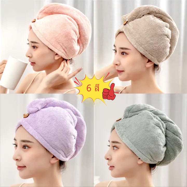 ผ้าเช็ดผมแห้งไว หมวกคลุมผม หมวกผมแห้ง 5 สีการดูดซึมน้ำที่แข็งแกร่งผมแห้งง่าย