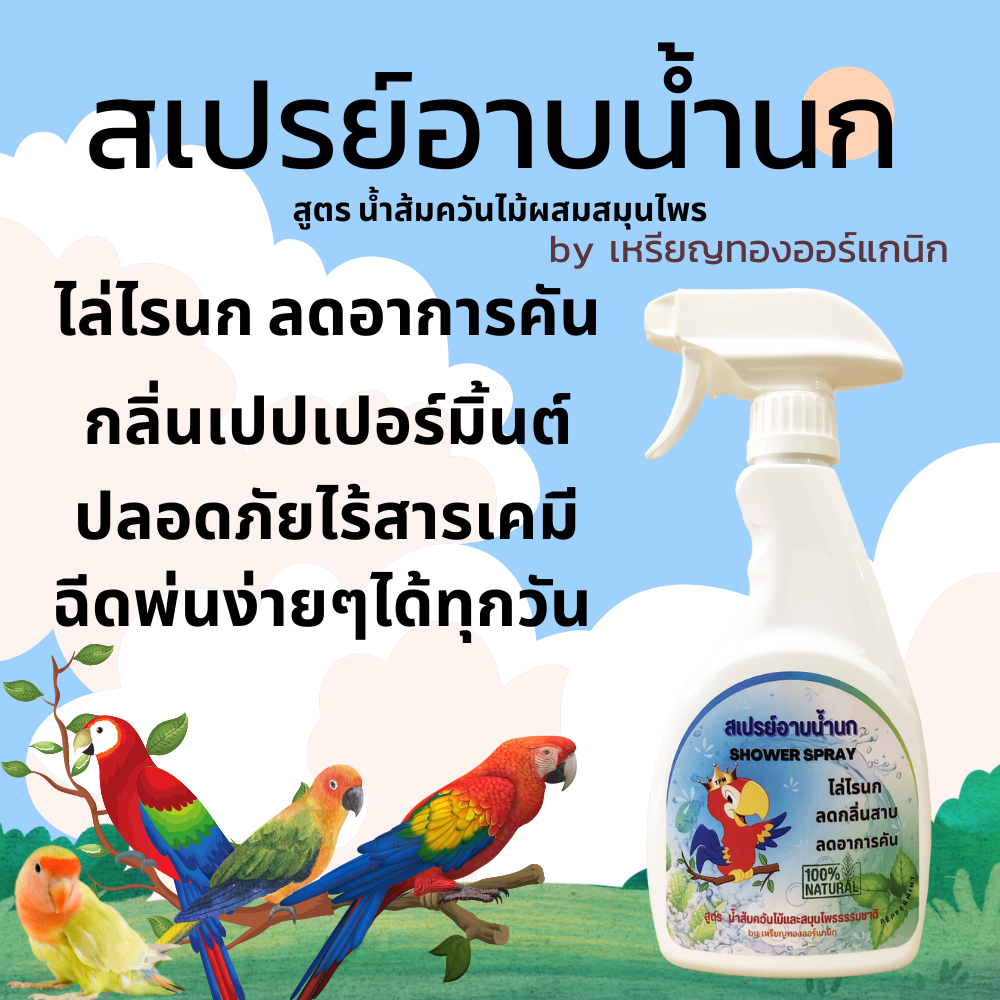 สเปรย์อาบน้ำนก ไล่ไรนก แก้อาการคัน ดับกลิ่นตัว เพิ่มความสดชื่น