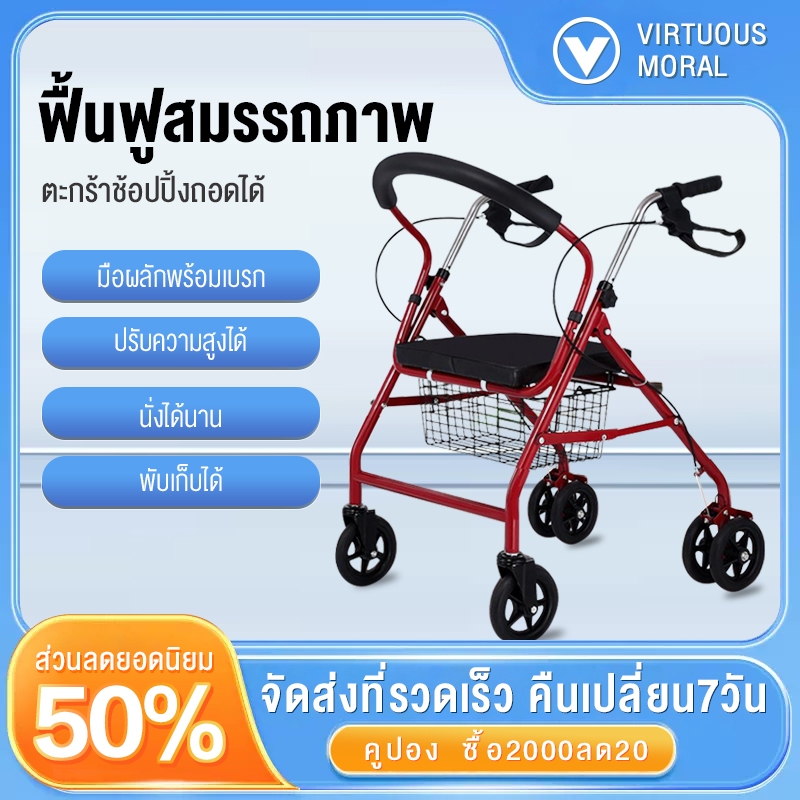 Rollator รถเข็นผู้ป่วยหัดเดิน พับเก็บได้มี6ล้อและที่พักเท้า รถเข็นช่วยเดิน walker รถเข็นผู้สูงอายุ รถเข็นสำหรับผู้สูงอาย