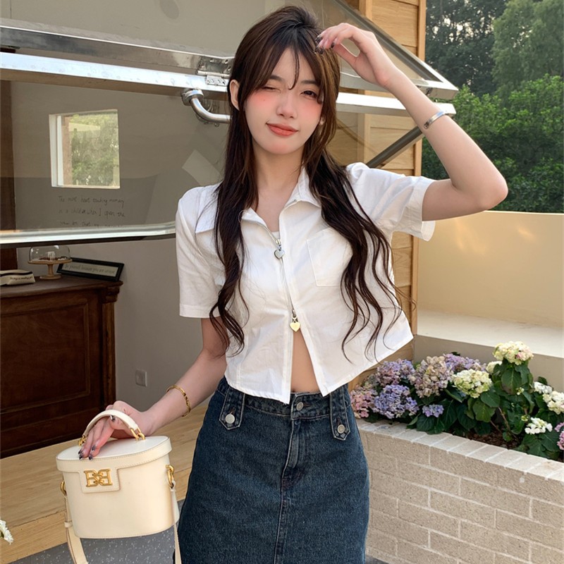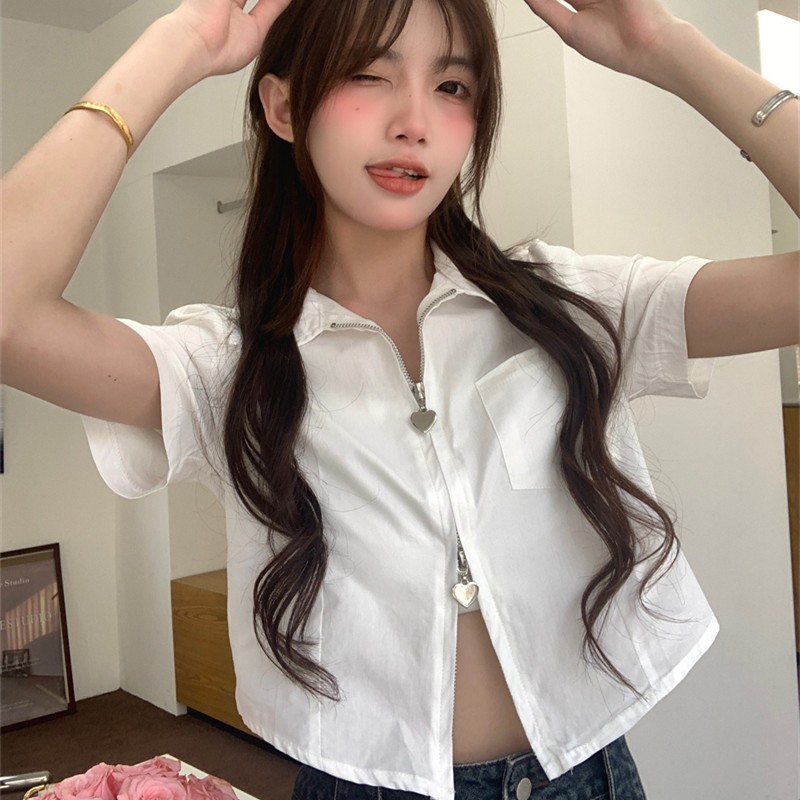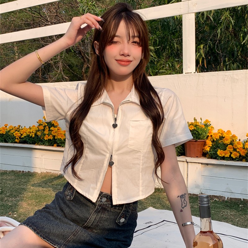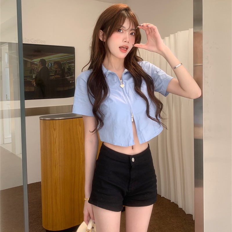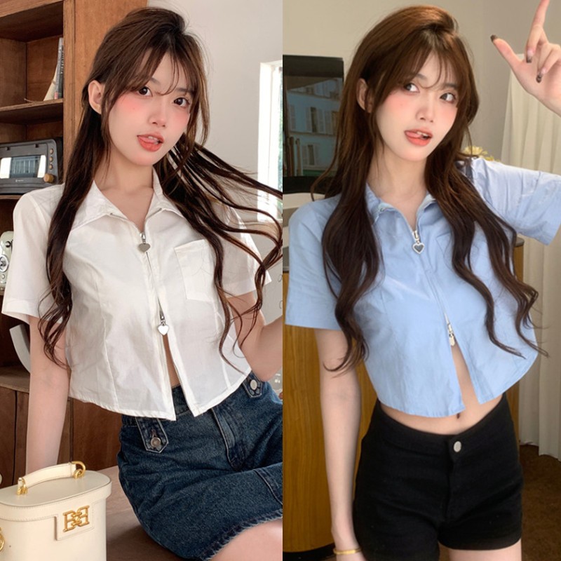 จัดส่งจากประเทศไทย💙เสื้อเบลาส์ แขนสั้น ใส่ซิปสองหัว สไตล์เกาหลี แฟชั่นฤดูร้อน#A10