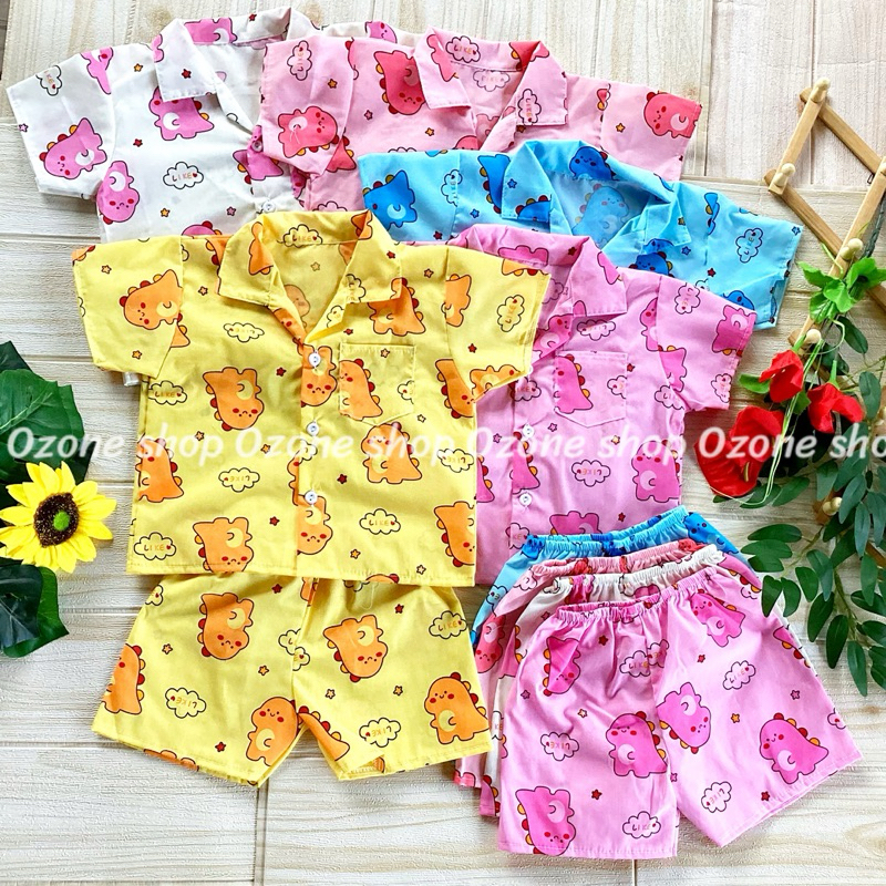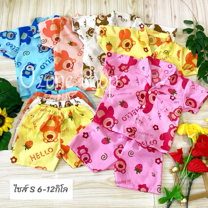 ชุดนอนเด็ก ชุดนอนแขนสั้น ชุดนอนคอปกแขนสั้น S 6-12กิโล