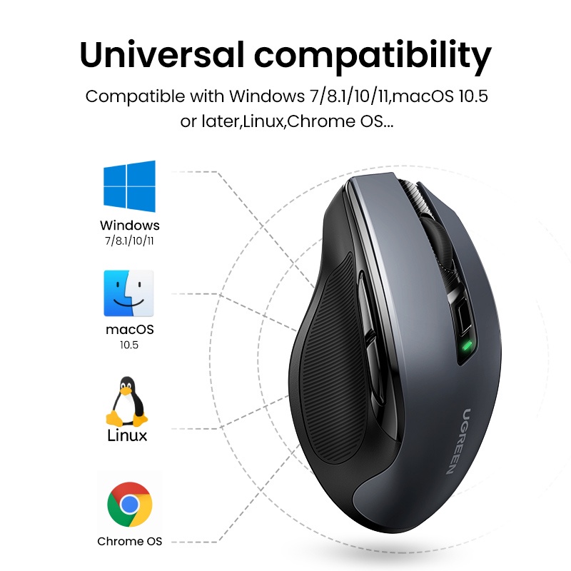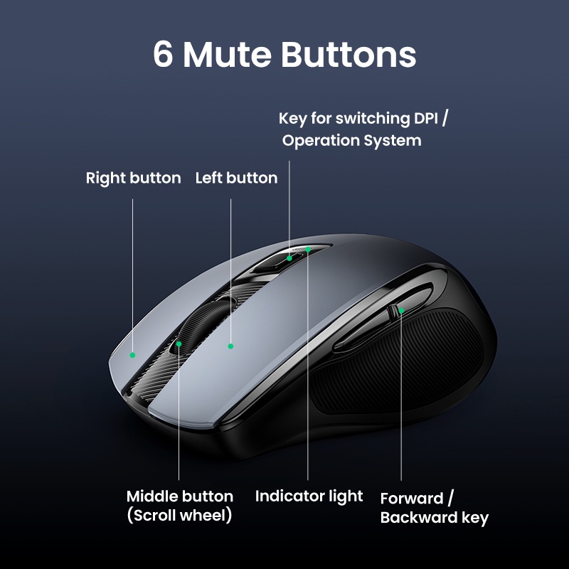 Ugreen เมาส์ไร้สาย 6 ปุ่ม 2.4G พร้อมตัวรับสัญญาณ USB 5 ระดับ DPI 4000DPI สําหรับแล็ปท็อป PC Mac Linux