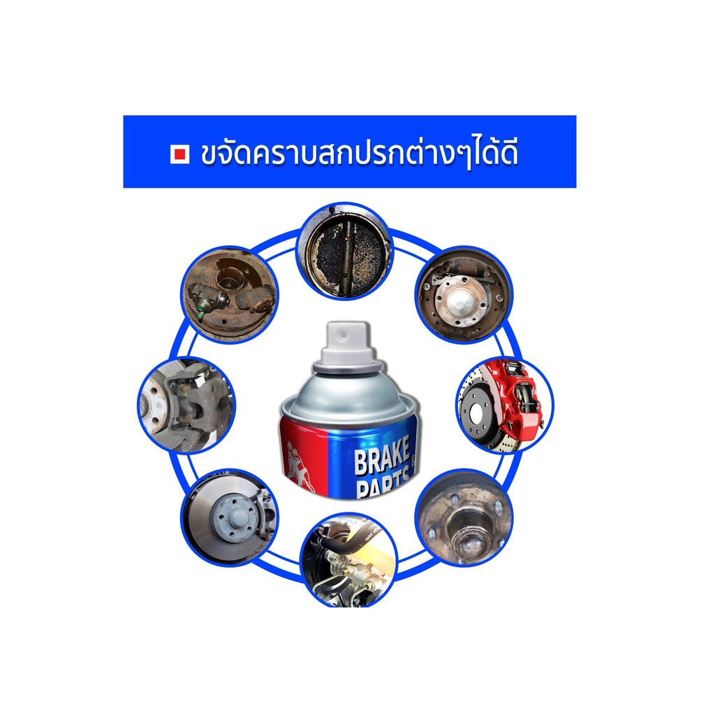 สเปรย์ขจัดคราบน้ำมัน จารบี ฝุ่นผง คราบเหนียวแน่น แทรกซึมได้ดี แห้งไว ไม่ทิ้งคราบ - ขจัดสิ่งสกปรกต่างๆ ที่สะสมตามชิ้นส่วนอะไหล่จากการใช้งาน เช่น คราบฝุ่นผงในระบบเบรครถ คราบสกปรกในห้องเครื่องรถยนต์ ฯลฯ - บำรุงรักษาชิ้นส่วนอะไหล่ ให้ทำงานได้เต็มประสิทธิภาพ ขจัดเสียงดังจากการทำงาน - ไม่กัดกร่อนย