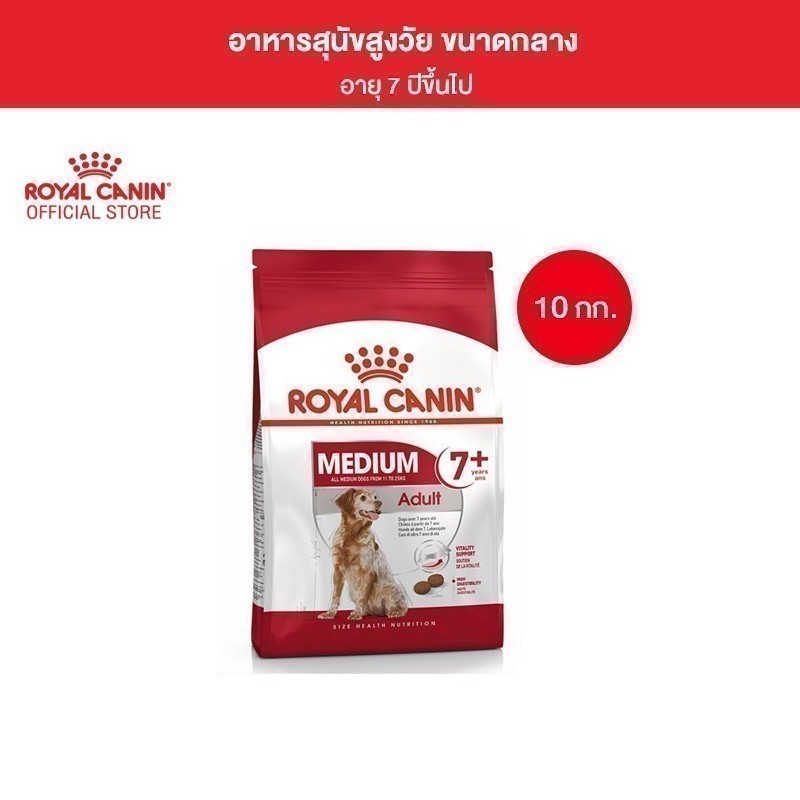 Royal Canin Medium Adult 7+ 10kg อาหารเม็ดสุนัขสูงวัย พันธุ์กลาง อายุ 7 ปีขึ้นไป (Dry Dog Food, โรยัล คานิน)