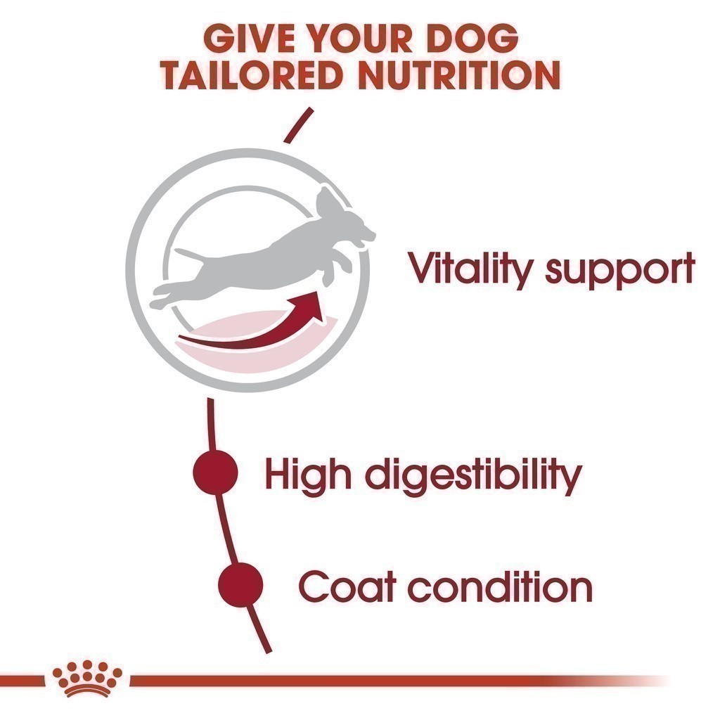 ... in medium breed dogs facing the first signs of ageing. Contains an exclusive complex of antioxidants to help neutralise free radicals. HIGH DIGESTIBILITY Helps promote optimal digestibility with an exclusive formula including very high quality protein and a balanced supply of dietary fibre. COAT CONDITION This formula contains nutrients that help support a healthy skin. Enriched with EPA-DHA.