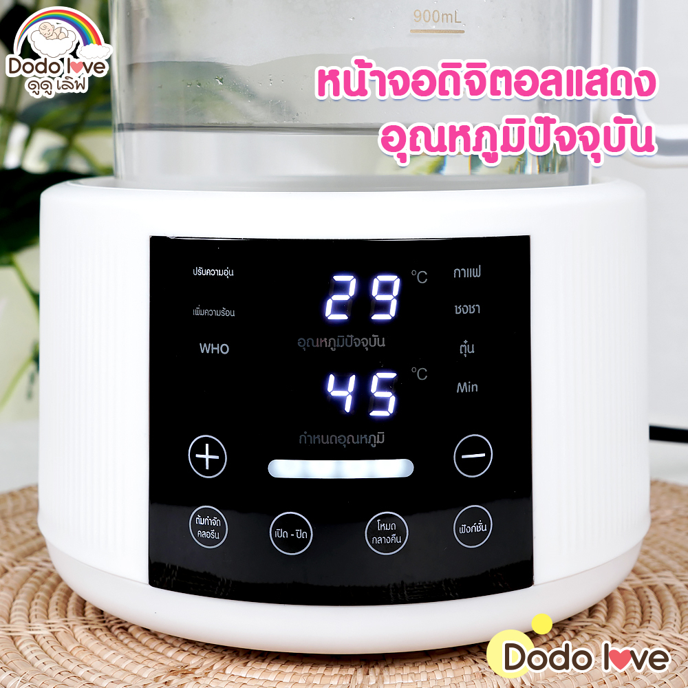ดูดูเลิฟ เครื่องต้มน้ำอเนกประสงค์ กาต้มน้ำไฟฟ้าแบบควบคุมอุณหภูมิ ออกแบบเป็นปุ่มดิจิตอลใช้งานง่าย สามารถเลือกอุณหภูมิที่ต้องการได้อย่างรวดเร็ว ทำให้ต้มน้ำร้อนได้อย่างรวดเร็วและมีประสิทธิภาพ ➦วัสดุ : ผลิตจากพลาสติก PP / แผ่นทำความร้อน สแตนเลส 316 (FOOD GRADE) ➦เป็นกาต้มน้ำแบบควบคุมอุณหภูมิ ใช้น้ำร้อ