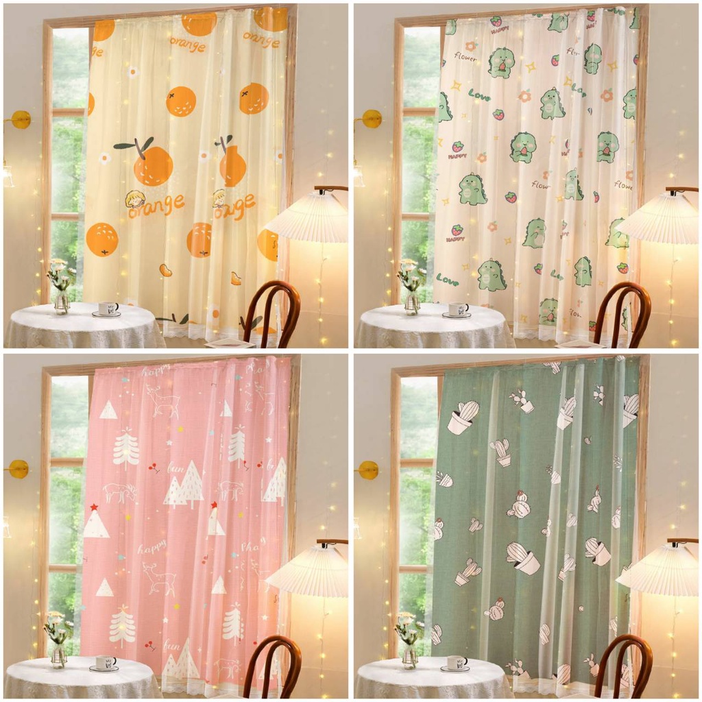 ⭐สินค้าขายดี👍 พร้อมส่งจากไทย ⭐ 👇โปรดอ่านรายละเอียดก่อนสั่งซื้อ👇 ผ้าม่าน 2 ชั้น ลายน่ารัก ม่านโปร่งแสง ไม่ต้องเจาะ ติดตั้งง่าย!! มีหลายลายให้เลือก ใช้ได้กับทุกห้องในบ้าน หรือจะใช้ตกแต่งในที่ทำงานก็ดูดี ✅ รุ่นใหม่**ไม่ต้องใช้ราวหรือลวดสลิง** มีแถบกาวให้ติดขอบหน้าต่างได้เลย กาวเหนียวแน่นไม่ต้