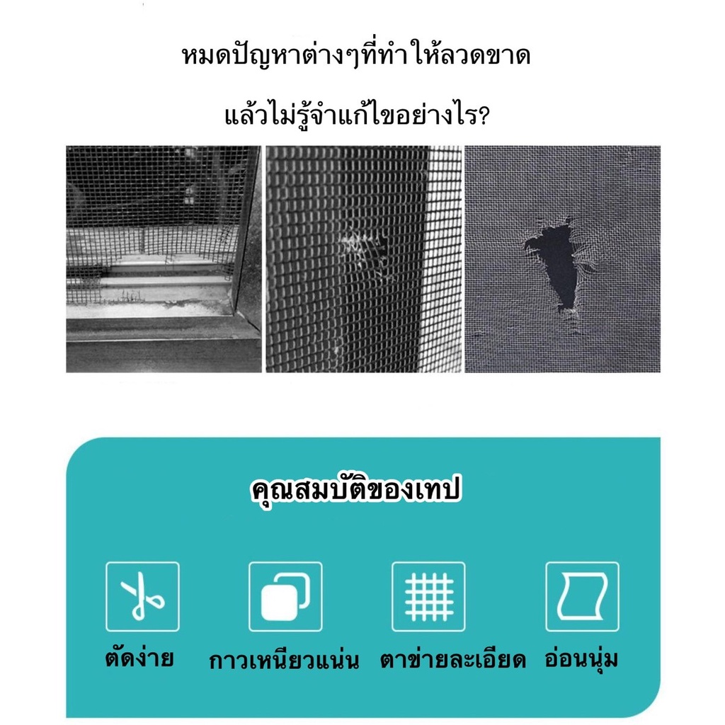 *สินค้าพร้อมส่ง* - เทปซ่อมตาขายหรือมุ้งลวด ใช้สำหรับซ่อมแซมมุ้งลวดบริเวณหน้าต่าง,ประตู หรืออื่นๆ - ช่วยแก้ปัญหามุ้งลวดขาดได้อย่างดี ป้องกันยุงหรือแมลงต่างๆที่จะเข้ามา - สามารถตัดขนาดให้พอดีกับบริเวณที่ต้องการ - ใช้งานง่าย เพียงลอกกกาว แล้วติดตามบริเวณที่ต้องการได้เลย - ประหยัดค่าใช้จ่าย ในการเ
