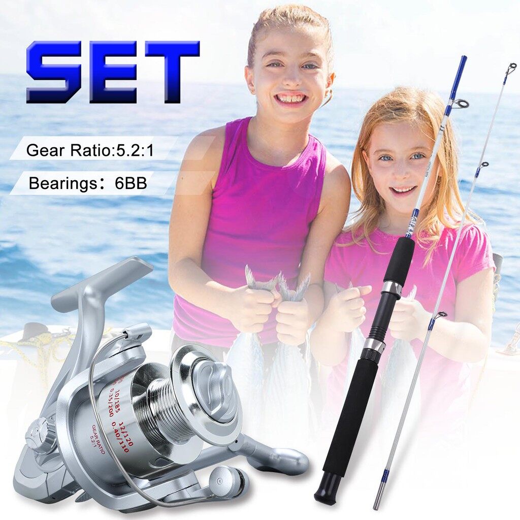 คันเบ็ดและชุดรอก1.2M 1.8M 2.1M แบบพกพา 2 ส่วนล่อคันเบ็ด 6BB 5.2: 1 เกียร์รอกตกปลาความเร็วสูงและรอกตกปลาชุดคอมโบสำหรับปลา