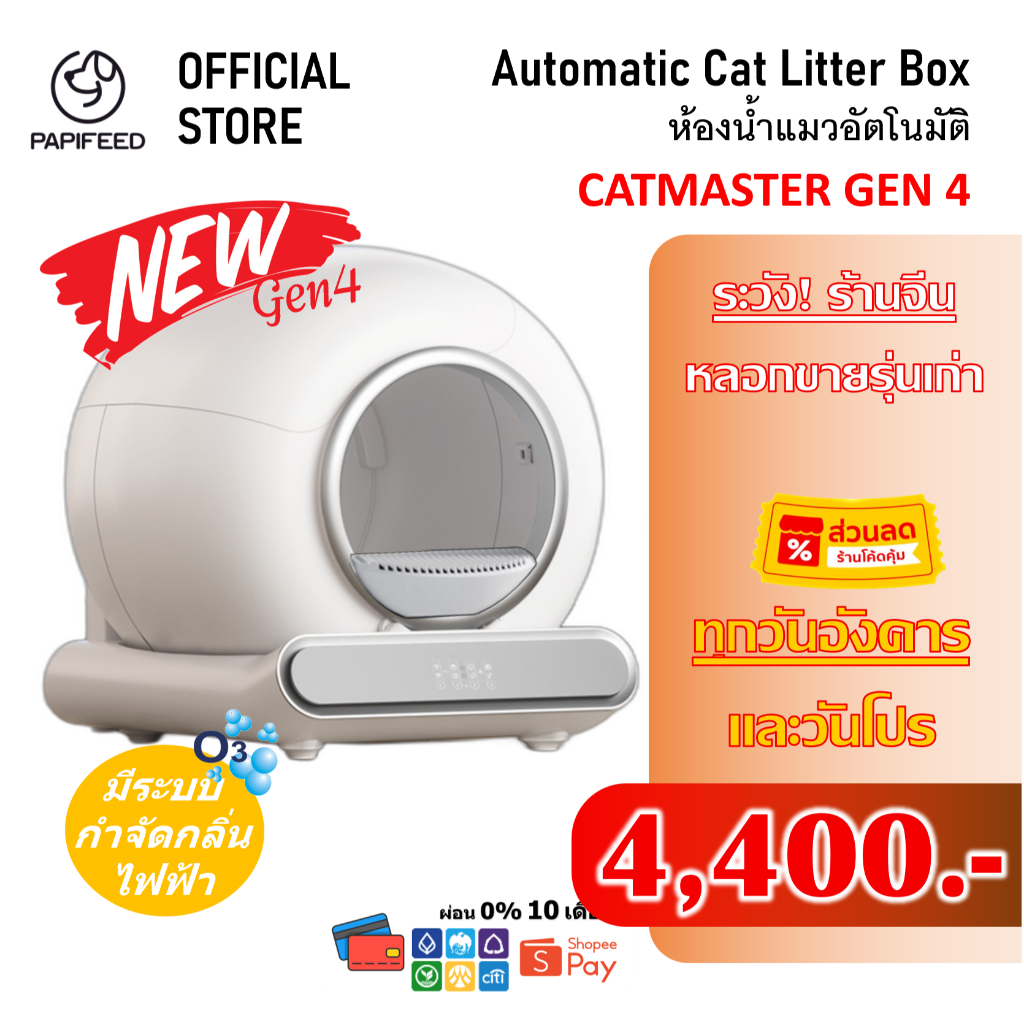 [ร้านคุ้มลด 1000] ห้องน้ำแมวอัตโนมัติ Gen4 Papifeed Catmaster Wifi Automatic Cat Toilet ส้วมแมว