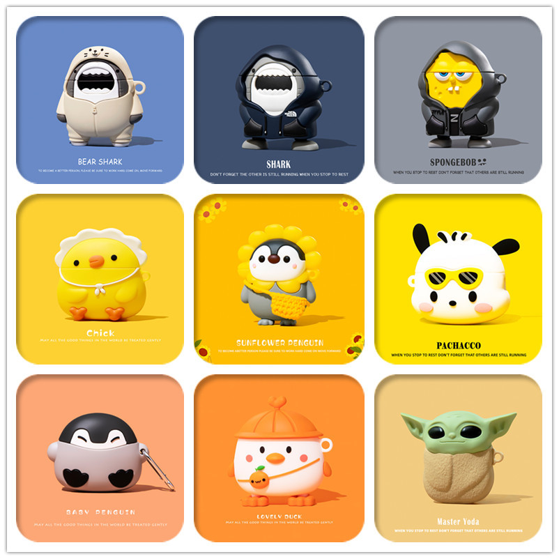 เคสซิลิโคนนิ่ม ลายการ์ตูนน่ารัก พร้อมคาราบิเนอร์ สําหรับ AirPods GEN 1 2 3 PRO