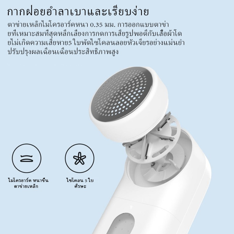 ... นเสื้อผ้า ตัดขุยผ้าได้เร็วและสะอาด ไม่ทำให้เสื้อผ้าเป็นรอย จัดการกับผ้าต่างๆได้อย่างง่ายดาย ผ้าขนสัตว์ผ้าขนสัตว์ผ้าขนสัตว์ชนิดหนึ่งผ้าไหม ฯลฯ ใบมีดลอยน้ำสแตนเลสไม่มีรูพรุน blade แบบลอยตัวแบบไม่มีรูพรุนช่วยป้องกันไม่ให้ลูกบอลผมติดขัด blade และไม่เด้งซึ่งอาจทำให้เสื้อผ้าเสียหายได้ การจัดตาข่ายวิทยาศาสตร์ ตาข่ายสแตนเลสหนา 0.35 มม. ไม่มีการเสียรูปเมื่อกด 171 หลุมได้รับการจัดเรียงอย่างใกล้ชิดทางวิทยาศาสตร์และพื้นที่เฉือนที่มีประสิทธิภาพสูงกว่าตะแกรงเหล็กธรรมดาถึง 13% 1300mAh แบตเตอรี่ ชีวิต: รองรับการชาร์จด่วน 1 ชั่วโมงสามารถใช้งานได้ 90 นาที มีพอร์ตชาร์จ USB เข้ากันได้กับอะแดปเตอร์หลักของตลาดชาร์จ bao และคอมพิวเตอร์สำหรับชาร์จ คุณสมบัติ ● ยี่ห้อ : Xiaomi Mijia ● รุ่น : MQXJQ01KL ● แรงดันไฟฟ้า : 3.7V ● กำลังไฟ : 2W ● สี : ขาว ● แหล่งจ่ายไฟ : USB ● เวลาทำงาน : 180 นาที ● ประเภทแบตเตอรี่ : แบตเตอรี่ Li-ion ● ความจุแบตเตอรี่ : 1300mAh ● น้ำหนักสินค้า : 0.35kg ● ขนาดสินค้า : 14.50 x 6.20 x 6.50 ซม ● ในกล่อง : 1 x น้ำยาล้างผ้าสำลี, 2 x ลอยไม่มีรูพรุน ใบมีด 1 x Manual