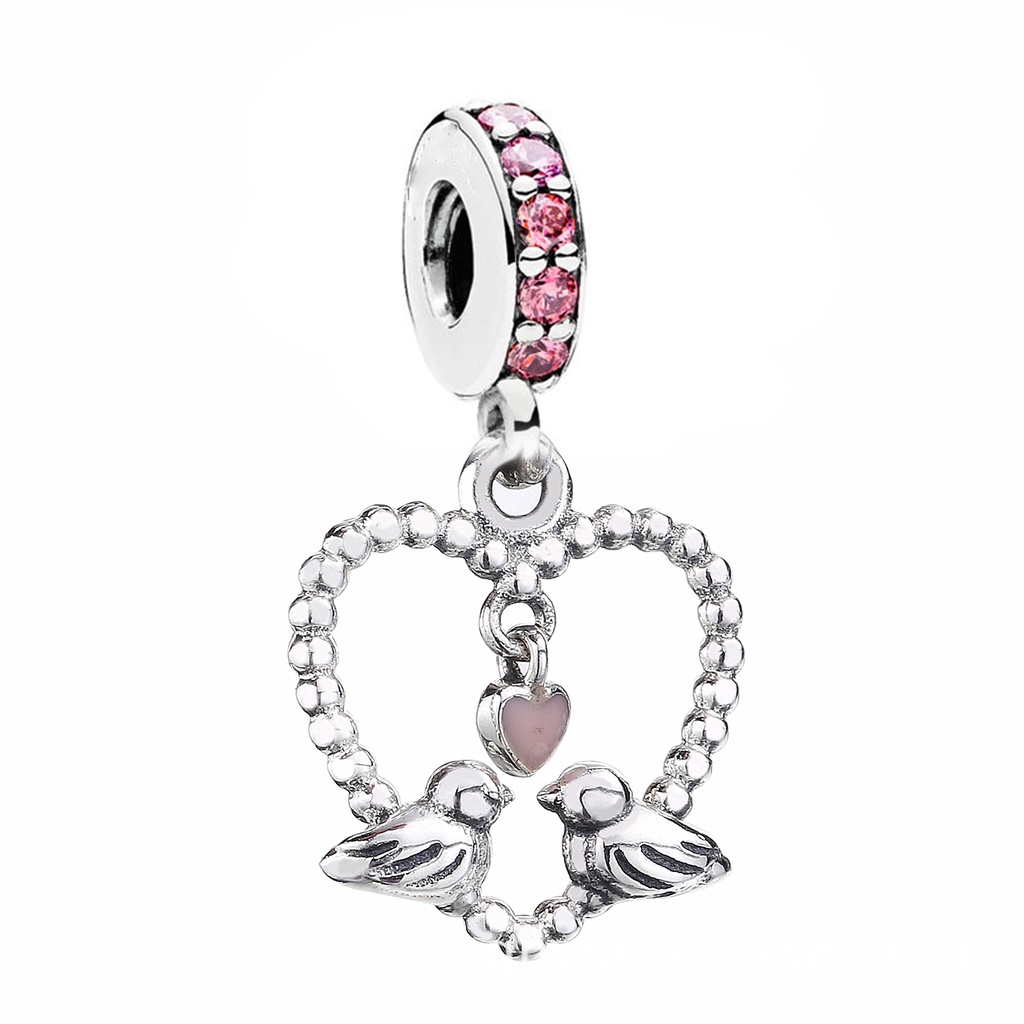 จี้ลูกปัด รูปหัวใจ นก สีชมพู สําหรับทําเครื่องประดับ สร้อยคอ สร้อยข้อมือ ผู้หญิง ผู้ชาย DIY