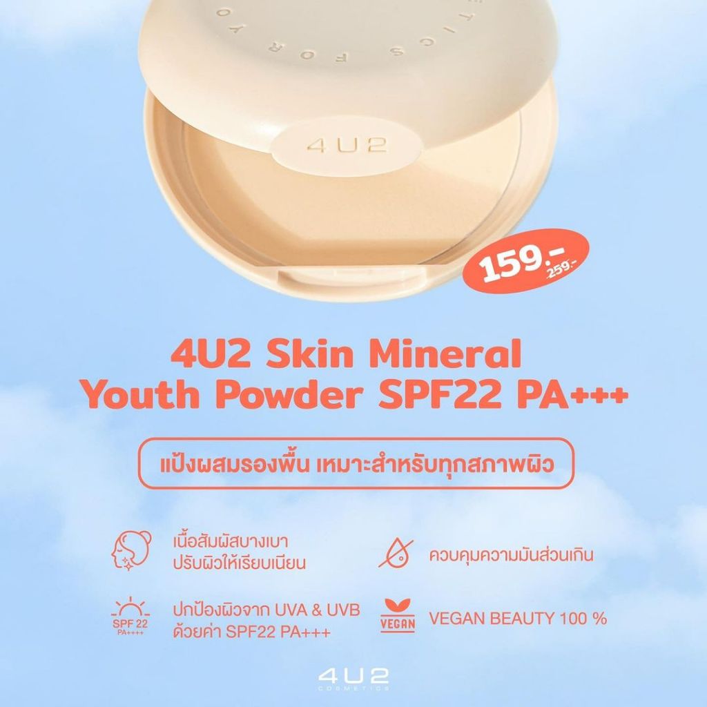 ถูก/แท้/มีไลฟ์ แป้ง 4U2 Skin Mineral Youth Powder SPF22 PA+++ แป้งน้ำแร่ แป้งผสมรองพื้น ผิวสวย หน้าเนียน มีออร่า