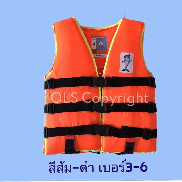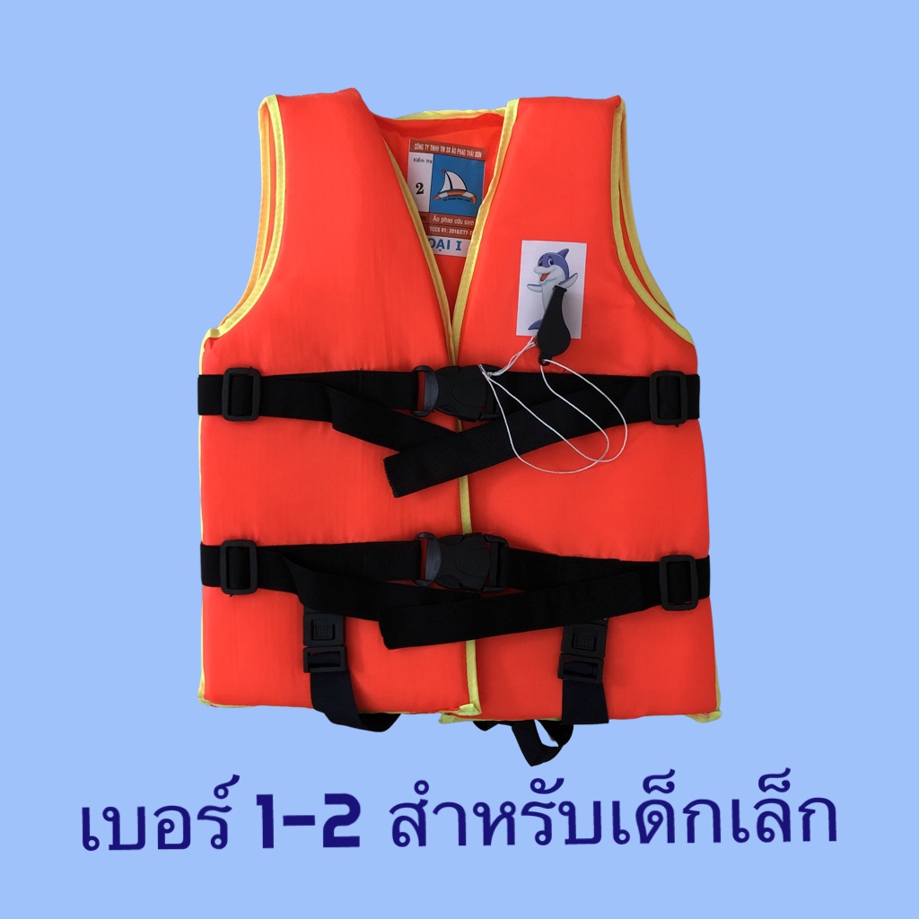 เสื้อชูชีพเบอร์1-6 สีส้มสะท้อนแสงพร้อมนกหวีด สำหรับเด็กและผู้ใหญ่