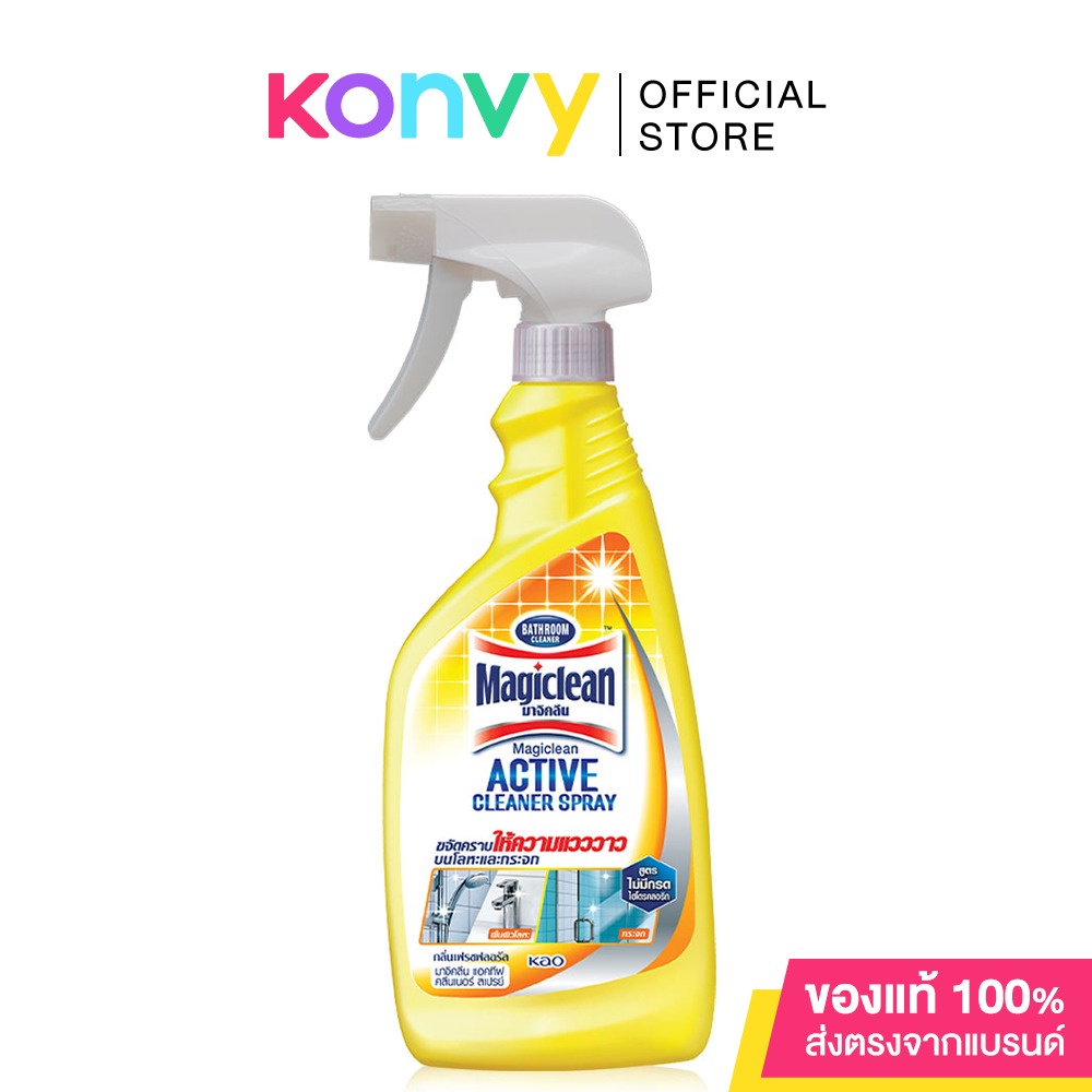 ... ามารถใช้ได้กับพื้น ผนัง อ่างล้างหน้า โถสุขภัณฑ์ ฉากกั้นห้องน้ำ กลิ่นไม่ฉุน ไม่แสบจมูก •ขจัดคราบให้ความแวววาวบนโลหะ กระจกและอุปกรณ์สุขภัณฑ์ สูตรไม่มีกรดไฮโดรคลอริก •เข้าถึงซอกมุมและส่วนที่เข้าถึงยาก ทำความสะอาดได้บริเวณกว้าง สะดวกใช้ •ขจัดคราบสกปรกบนโลหะ กระจก และอุปกรณ์สุขภัณฑ์ ให้ความแวววาว •สามารถขจัดคราบสบู่สะสมและคราบน้ำ โดยไม่กัดกร่อน ไม่ทำลายพื้นผิว ร่องกระเบื้อง •ไม่มีกลิ่นฉุนจากกรดไฮโดรคลอริก •ให้กลิ่นเฟรช บูเก้ ฉีดMagicleanBathroom Spray Fresh Bouquteบนพื้นผิวโดยตรง ขัดด้วยฟองน้ำหรือแปรง และล้างออกด้วยน้ำสะอาด