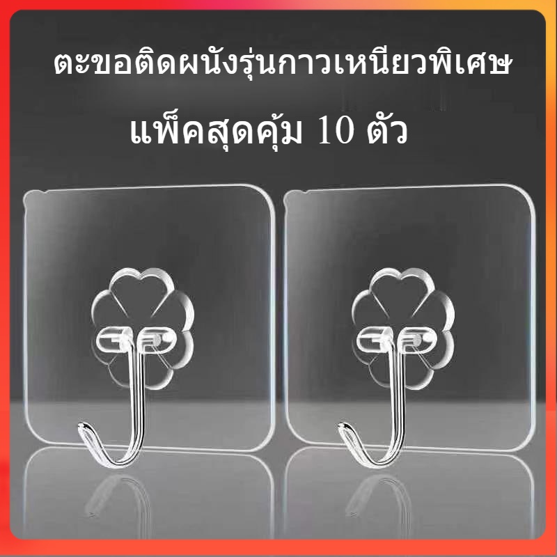 ตะขอติดผนังอย่างดี 10ตัว กาวเหนียวทนทาน ตะขอกาวติดผนังอเนกประสงค์ ตะขอแขวนติดผนัง ที่แขวนติดผนัง
