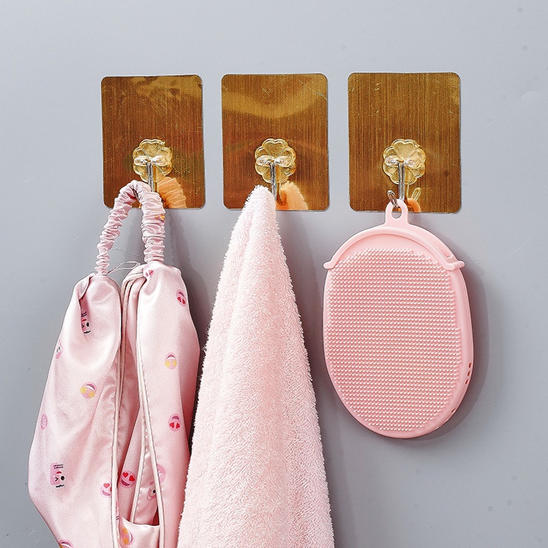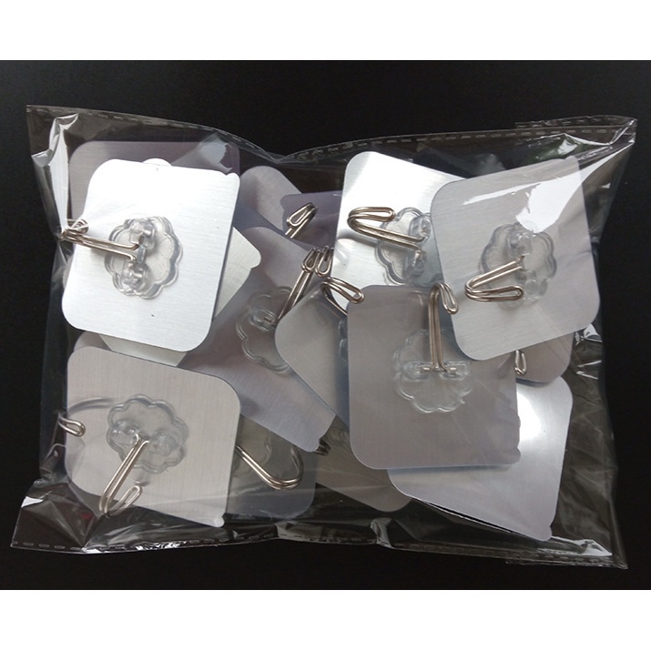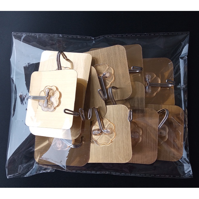 ตะขอติดผนัง แพ็คสุดคุ้ม 10 ตัว - เคลือบกาวนาโนเหนียวพิเศษ - ขนาด:6*6cm - สี ใส ทอง เงิน - ตัวตะขอทำจาก Stainless 304 อย่างดี สามารถปรับขึ้นลงได้ 180 องศา - วัสดุุตัวแผ่นใสทำจาก PVC อย่างดี เคลือบกาวนาโนเหนียวพิเศษ - รับน้ำหนักได้สูงถึง 15 กิโลกรัม - เมื่อลอกออกไม่ทื้งคราบ สามารถใช้งานได้หลาก