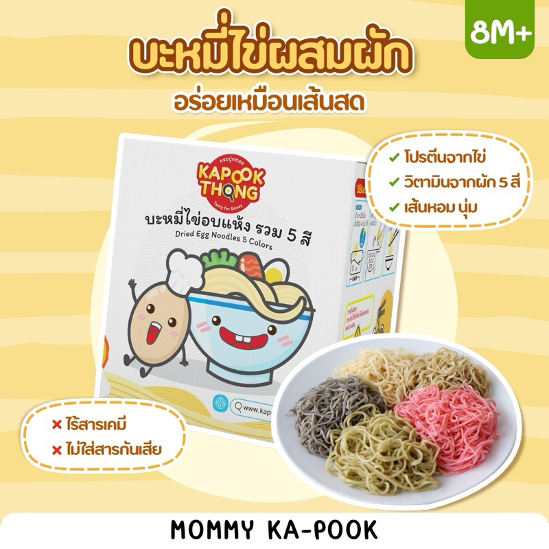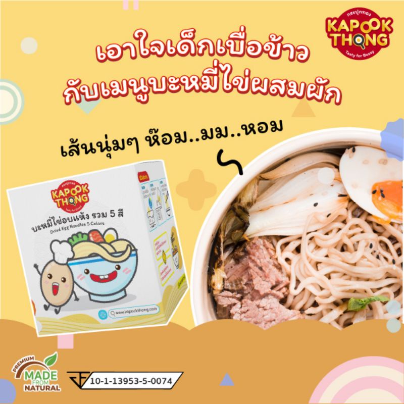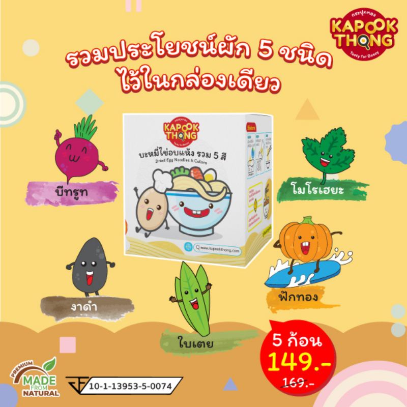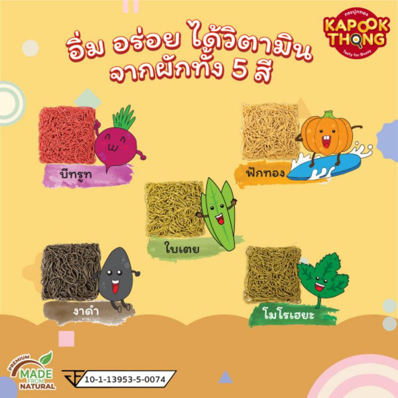 Kapookthong กระปุกทอง บะหมี่ไข่ ผสมผักรวม 5 สี​ ไม่ใส่สี ไม่ใส่​สารกัน​เสีย​ สำหรับเด็ก 8 เดือน+