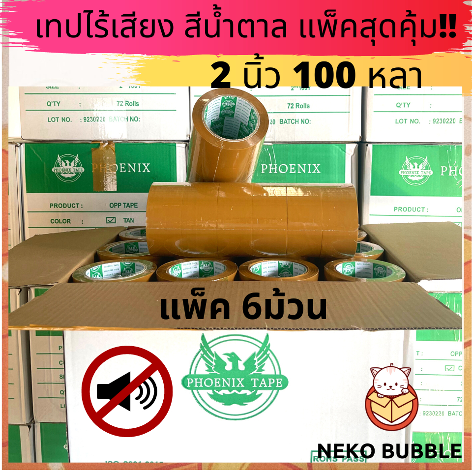 เทปไร้เสียง เก็บเสียง เทปกาวใส/ขุ่น แพ็ค 6 ม้วน กว้าง 2 นิ้ว ยาว 100 หลา