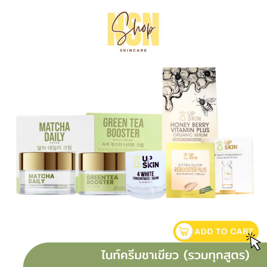 สินค้าพร้อมส่ง |ไนท์ครีมชาเขียว green tea night ครีมหน้าเด็กสูตรใหม่ up skin napat skin ขนาด 10กรัม ขนาด50กรัม