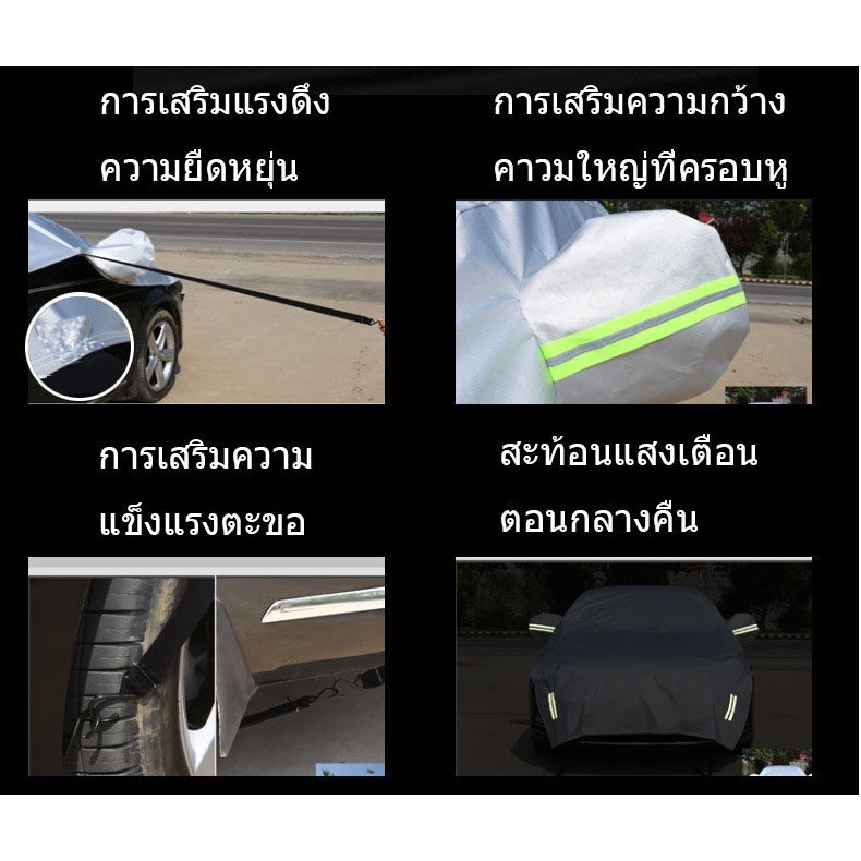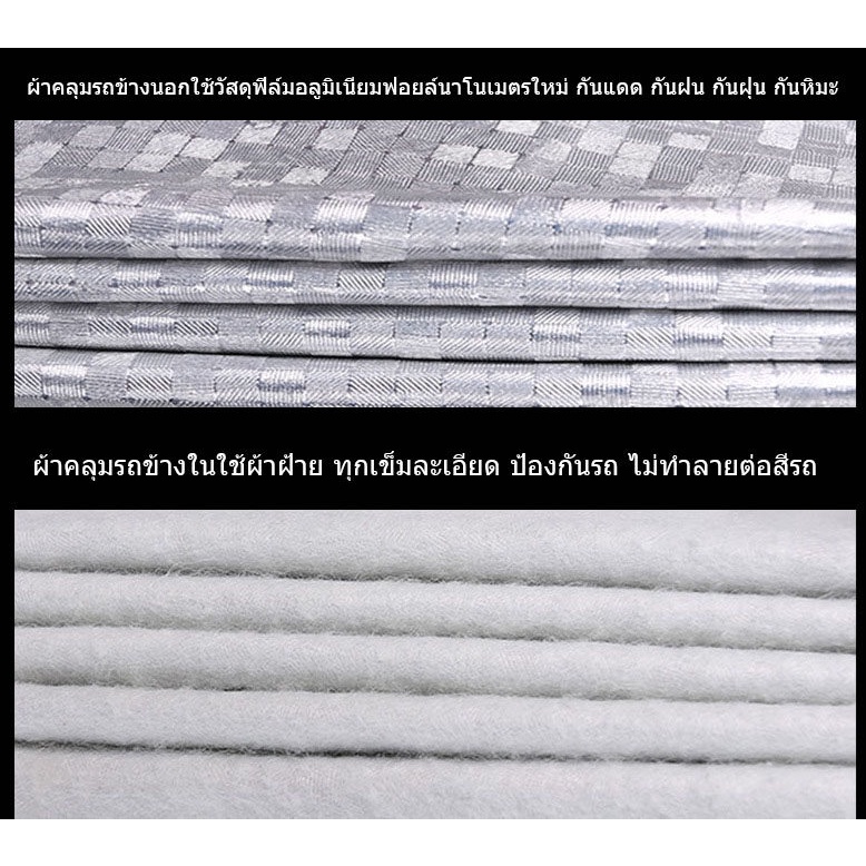 ... กับคุณ ขอบใจ。🙏🙏 ----------------💎ทำไมต้องเลือกเรา💎----------------- ✅【มีในสต็อก 100%】 🚚【จัดส่งภายใน 48 ชั่วโมง โดยเฉลี่ย 3-5 วันหลังจัดส่ง! 】 💯【ประกันคุณภาพ】 📦【ตรวจสอบให้ดีก่อนส่งบรรจุภัณฑ์ที่ปลอดภัย】 ❇️ผ้าคลุมรถกัน UV ใช้ได้กับรถเก๋งทุกรุ่น และรถSUV ผ้าคลุมรถอัพเกรดใหม่ สามารถใช้กับรถที่มีความยาว: 4.5 เมตร - 5 เมตร 1. วัสดุ PEVA ที่เพิ่มความหนา สามารถป้องกันความร้อนเข้าไปในรถได้ 50% 2.ทำจากฟิล์มเคลือบอลูมิเนียมที่เพิ่มความหนา กันน้ำ กันรอยขีดข่วน ป้องกันการเปรอะเปื้อน 3.ชั้นในทำจากวัสดุ PP ที่เพิ่มความหนา ป้องกันสีเดิมของรถไม่ให้เกิดรอยขีดข่วน 4.ป้ายสะท้อนแสง ป้ายสะท้อนแสง เพิ่มความปลอดภัยเวลาจอดรถยามค่ำคืน 5.เย็บด้ายคู่ แข็งแรงยิ่งขึ้น ไม่รั่วซึมน้ำ 6.มีสายยึด 8 จุด ❇️ใช้งานได้ทั้ง รถเก๋ง 4 ประตู และ รถSUV ❇️ผ้าคลุมกันแดดรถยนต์ ชนิด ครึ่งคัน -ใช้งานได้ทั้ง รถเก๋ง 4 ประตู รถ 5ประตู SUV และประยุกต์ใช้ได้กับรถกะบะเฉพาะคลุมห้องโดยสาร บางรุ่นอาจคลุมตัวท้ายกะบะไม่หมดนะคะ( ความยาวผ้าคลุม 535 ซม. )ลูกค้าไม่แน่ใจขนาดผ้าคลุมใช้ได้กับรถรุ่นไหนทักแชทก่อนสั่งซื้อค่ะ แม่ค้ายินดีให้ข้อมูล -สินค้าคุณภาพสูงหนา เย็บขอบอย่างดี -วัสดุคุณภาพสูงในการสะท้อนแสง UV ได้ดี -กันแดด กันน้ำ 100% -รถของคุณจะไม่มีกลิ่นเหม็นอับ -กันรอยขีดข่วน มีผ้า cotton ด้านในสุดช่วยถนอมสีรถได้ดีเยี่ยม -ปกป้องรถยนต์ของคุณจากแสงแดดและอุปกรณ์ในรถยนต์ -ช่วยลดอุณหภูมิในห้องโดยสาร เมื่อจอดรถกลางแดด ปกป้องรถยนต์ของคุณ รุ่นที่ใช้งานได้:Audi A5,Audi A3,Audi A4,Audi A8,Audi A7,Audi A6,Audi R8,BMW 1-series,BMW 6-series,BMW 5-series,BMW 4-series,BMW 3-series,BMW i3,BMW 326,Ford Festiva,Ford Fiesta,Ford Flex,Ford Focus,Honda City,Honda Civic,Honda Civic Type R,Honda Crosstour,Honda Fit,Honda Jazz,Mazda 3,Mazda 5,Mazda 6,MG 3,MG 5,MG 6,Nissan Serena,Nissan Silvia,Nissan Sunny,Nissan Terrano,Nissan Teana,Nissan Tiida,Nissan Titan,Tesla Model 3,Toyota Allion,Toyota เรียนชนะที่คุณได้รับสินค้าที่เราได้ส่งให้คุณไม่ต้องกังวลใด ๆ โปรดให้คะแนนระดับ 5 ดาวแก่เราจะไม่ มีความสุขเสมอ. หากสินค้าผิดหรือส่งผิดโปรดอย่าให้คำวิจารณ์ที่ไม่ดีการตรวจสอบที่ไม่ดีจะไม่สามารถแก้ปัญหาได้คุณสามารถคุยกับฝ่ายบริการลูกค้าของเราก่อน เราจะให้ผลลัพธ์ที่น่าจะแน่นอน