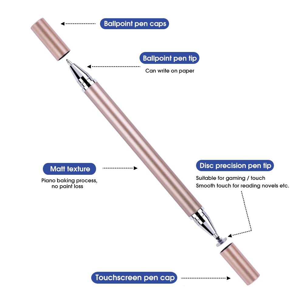2 In 1 ปากกาสไตลัส หัวคู่ ปากกา Capacitive สากล หน้าจอสัมผัส โทรศัพท์มือถือ เขียน อุปกรณ์เสริม จับสบาย ความไวสูง กันลื่น เหมาะกับโทรศัพท์ แท็บเล็ต มอนิเตอร์