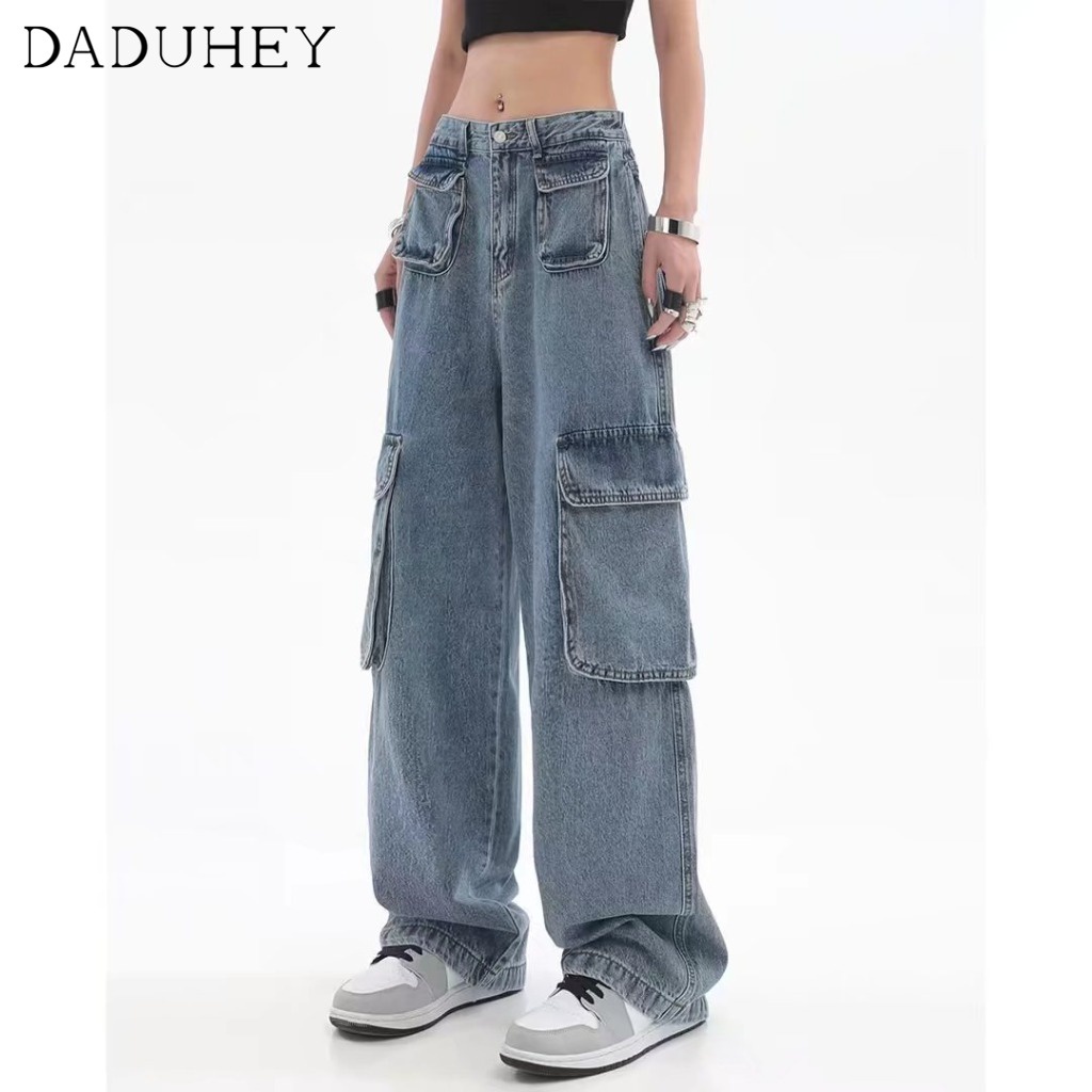 DaDuHey💕 Women's Summer-Style Retro Design Multi-Pocket Jeans High Street Niche Straight Wide Leg Loose Cargo Pants