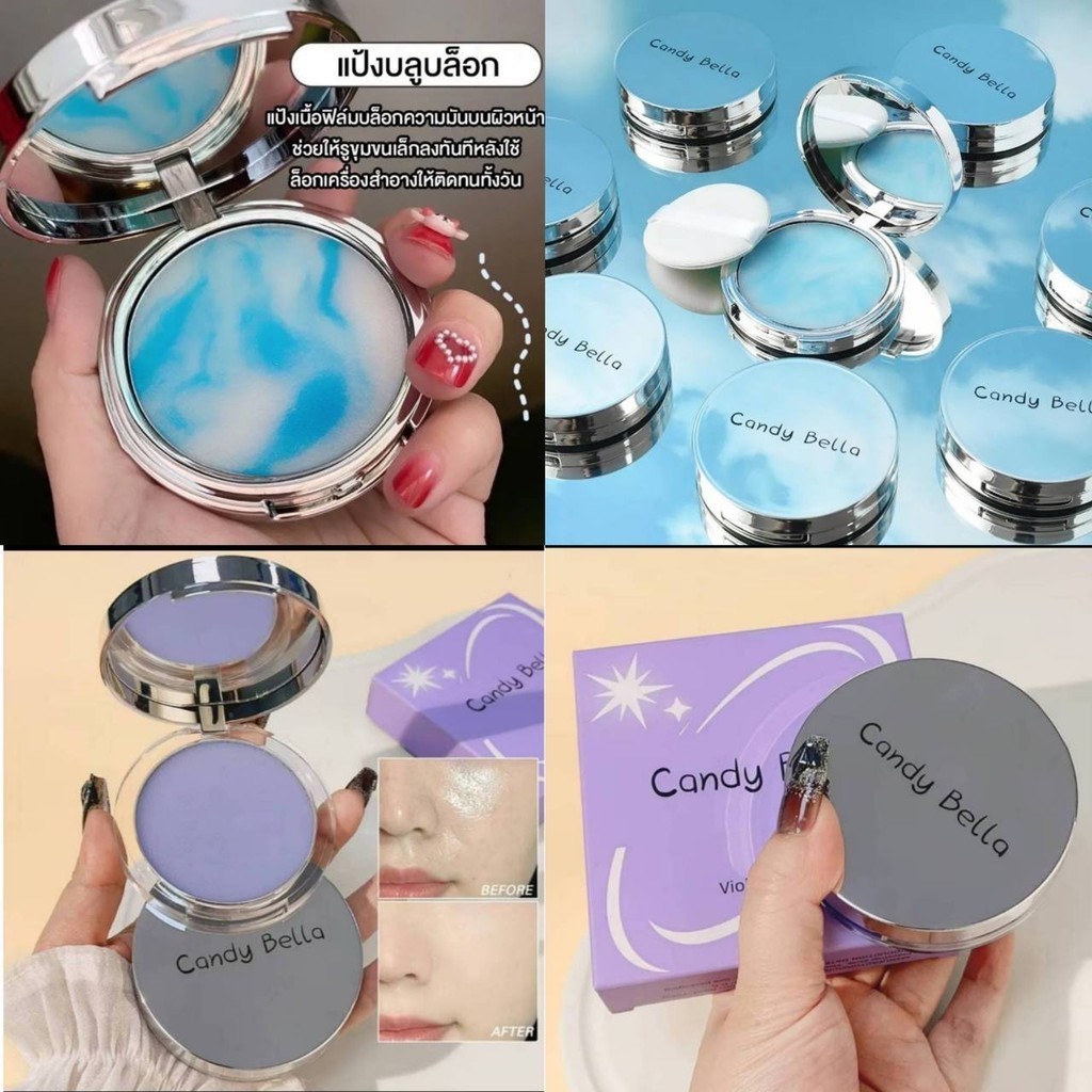 📌คุณสมบัติของผลิตภัณฑ์ แคนดี้เบลล่าแป้งบลูล็อก เนื้อเจล บล็อกความมันบนผิว ติดทนทั้งวัน แป้งนวัฒตกรรมใหม่ Makeup Powder Candy Bella Blue Sky Cloud Makeup Powder แป้งบลูล็อก แป้งเนื้อเจล บล็อกความมันบนผิว ติดทนทั้งวัน แป้งนวัฒตกรรมใหม่ ดูดซับความมัน เนียนนุ่ม กระจ่างใสไม่หมองคล้ำ ใช้ได้ทุกสีผิว