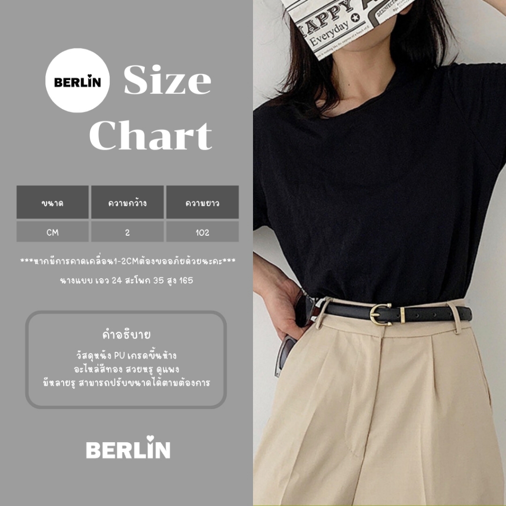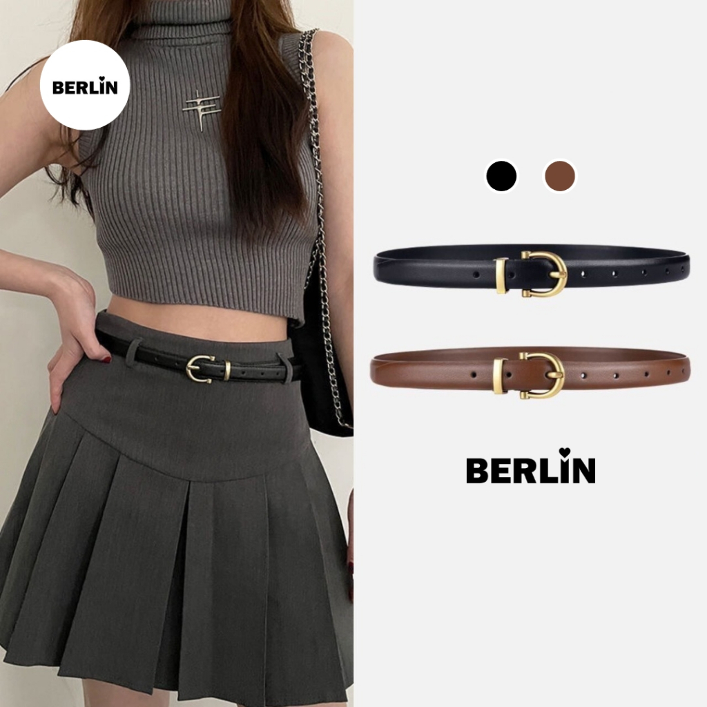 Berlin เข็มขัดหนังแฟชั่นเกาหลี สีพื้น แมทช์ลุคง่าย / No : 240