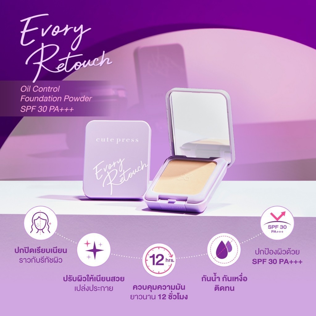 CUTE PRESS แป้งผสมรองพื้น EVORY RETOUCH OIL CONTROL FOUNDATION POWDER SPF 30 PA+++ ตลับคอมแพ็ค (ขนาดพกพาไม่มีถาดรองพัฟ)