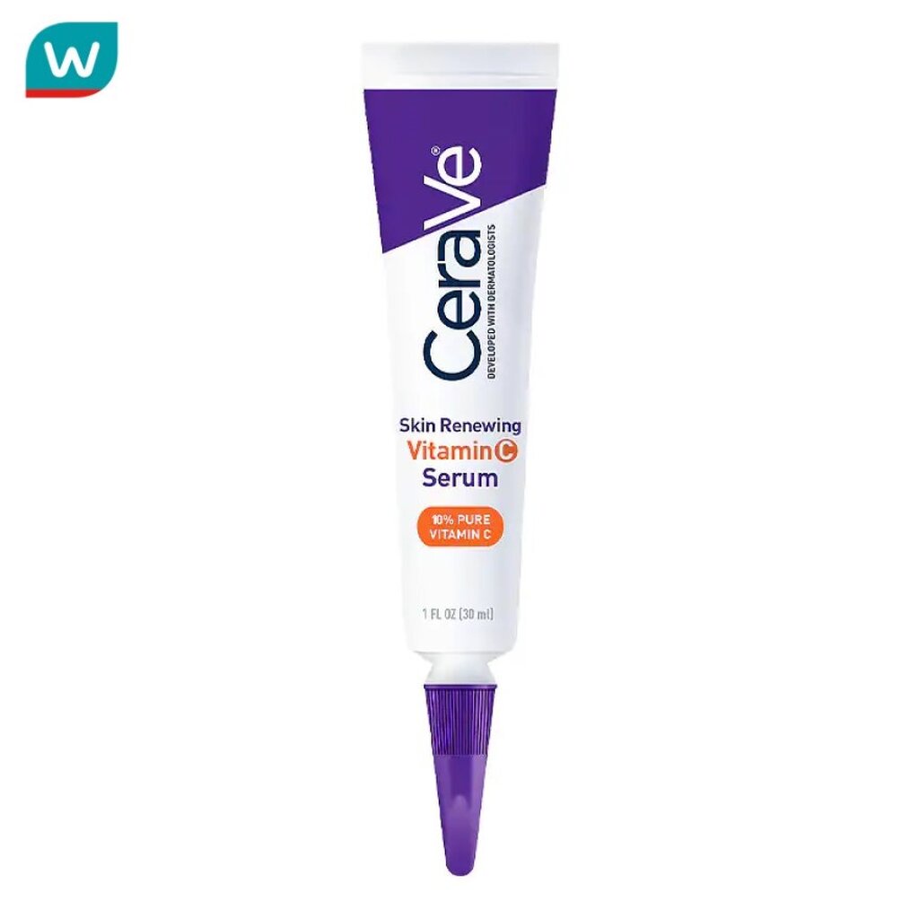 รายละเอียดสินค้า Cerave Skin Renewing Vitamin C Serum เซราวี สกิน รีนิววิ่ง วิตามินซี เซรั่มเซรั่มที่มีวิตามินซีบริสุทธิ์เข้มข้น 10 (แอลแอสคอร์บิก แอซิด) เซรั่มผสานเซราไมด์ 3 ชนิดที่จำเป็นต่อผิว เสริมเกราะปกป้องผิวแข็งแรง ใช้แล้วรู้สึกสบายผิว พร้อมเติมความชุ่มชื้นให้แก่ผิวด้วยอนุพันธ์ไฮยาลูโรนิก
