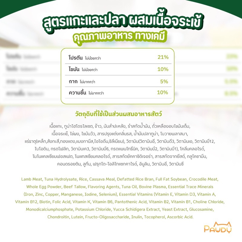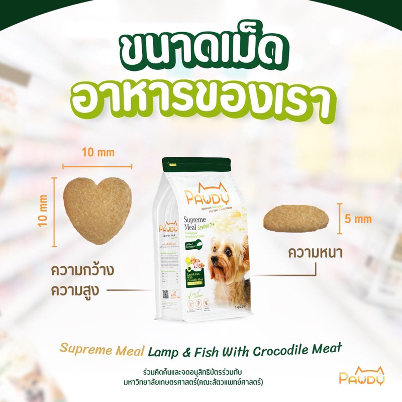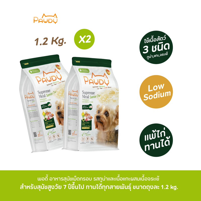 Pawdy อาหารสุนัขเกรดพรีเมียม สำหรับสุนัขสูงวัย อายุมากกว่า 7 ปี สูตรแกะและปลา ผสมเนื้อจระเข้ ขนาด 1.2 กก. (2 ถุง)