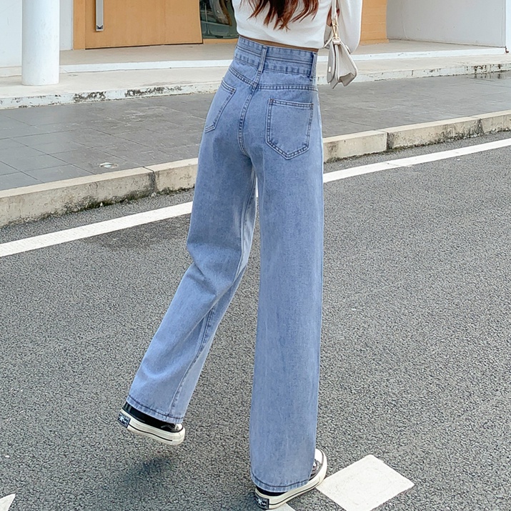 💥YH#9411💥มีไซซ์ S-3XL💥กางเกงยีนส์ เอวสูง สไตล์เกาหลี ตกแต่งกระดุมด้านหน้า เท้ากว้าง กางเกงยีนส์ขายาว สวยๆเก๋ๆ