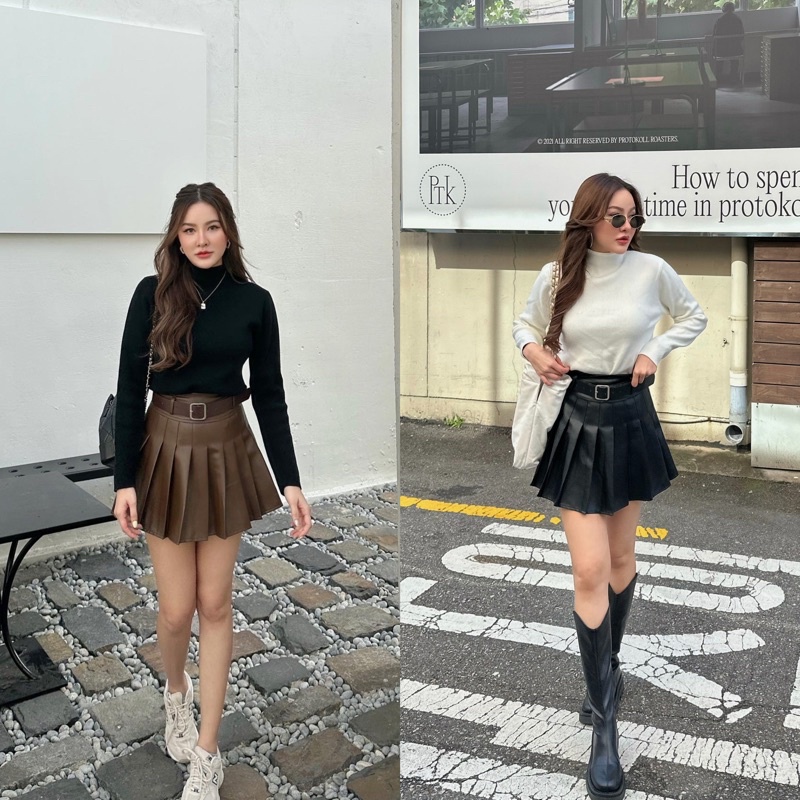 Leather skirt with belt 450฿ สี: ดำ,น้ำตาล กระโปรงหนังทรง tennis skirt ขอบเอวสูง มีแถมเข็ดขัดให้ด้วยค่า ตามสีกระโปรงเลย มีซับในกางเกงกันโป๊นะคะ ทรงน่ารักมากๆ🥰 แมทกับเสื้อสายเดี่ยว เสื้อยืด หรือแมทลุค winter เข้ากันสุดๆ ซิปข้าง ยาว15” S เอว 25-26” สะโพก 35-36” M เอว 27-28” / 37-38” L เอว 29-3