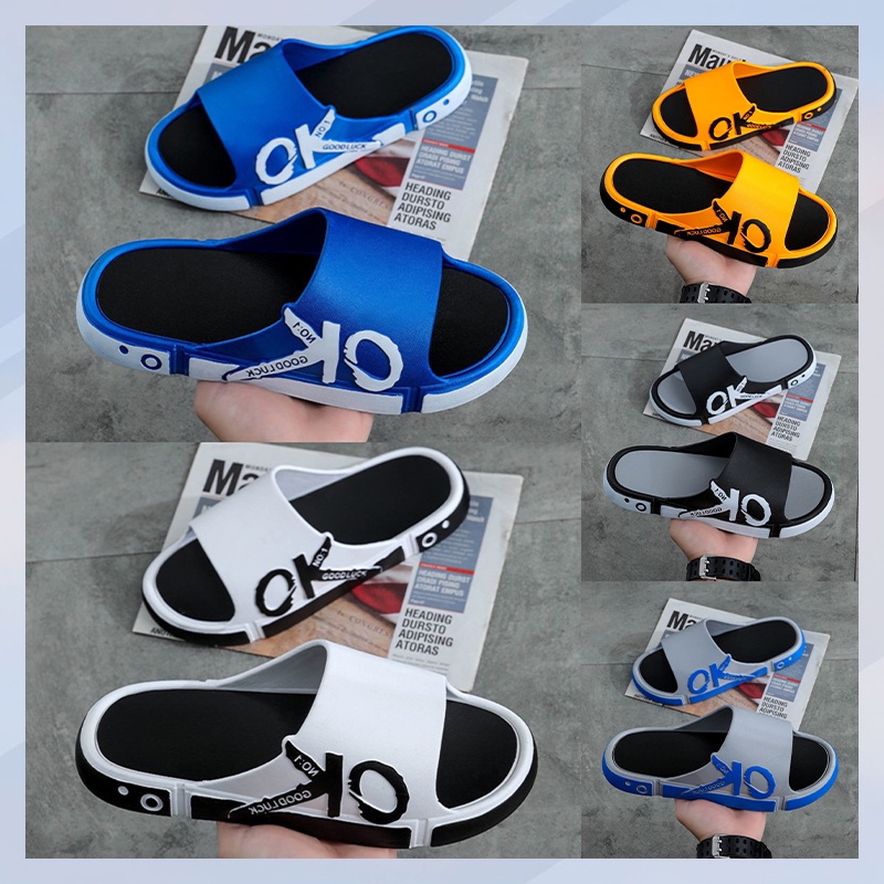 GFShop พร้อมส่ง รองเท้าแตะแบบสวม สุภาพบุรุษ ลายเท่ห์ๆด้านข้าง ใส่ได้ทุกโอกาส