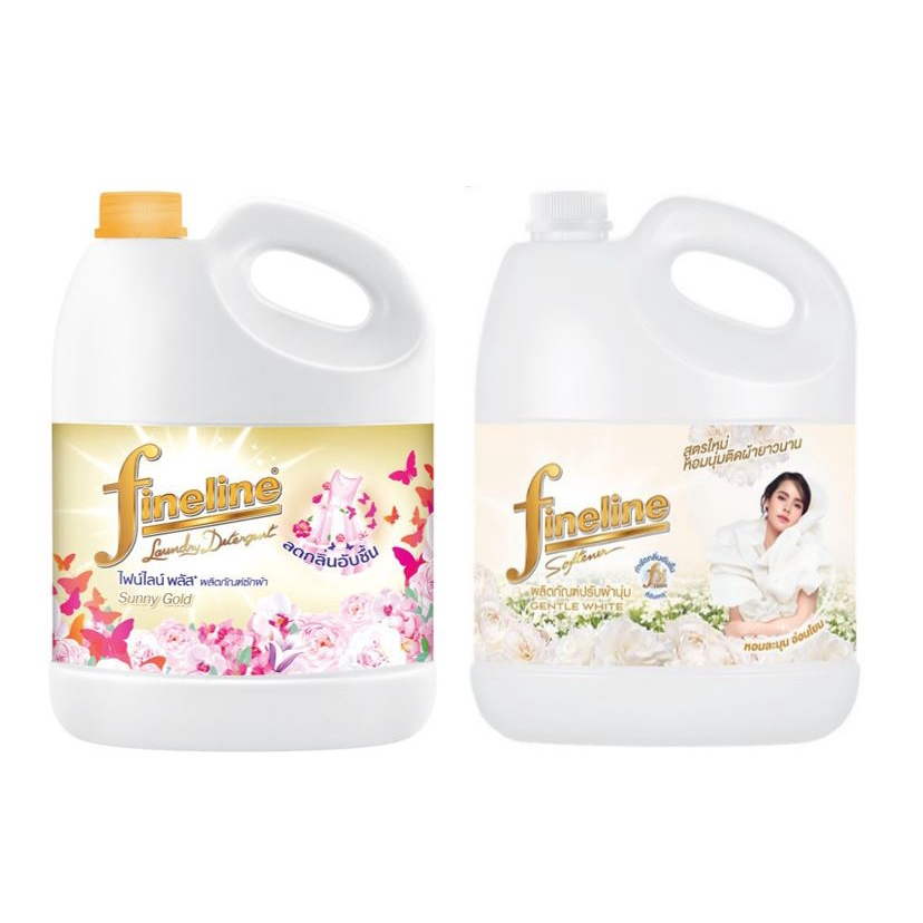 [ชุดคู่หอม]ไฟน์ไลน์ ผลิตภัณฑ์ปรับผ้านุ่ม เจนเทิล ไวท์ 2800 มล.ซักผ้า สูตรลดกลิ่นอับชื้น สีทอง กลิ่นซันนี่โกลด์ 3000 มล.