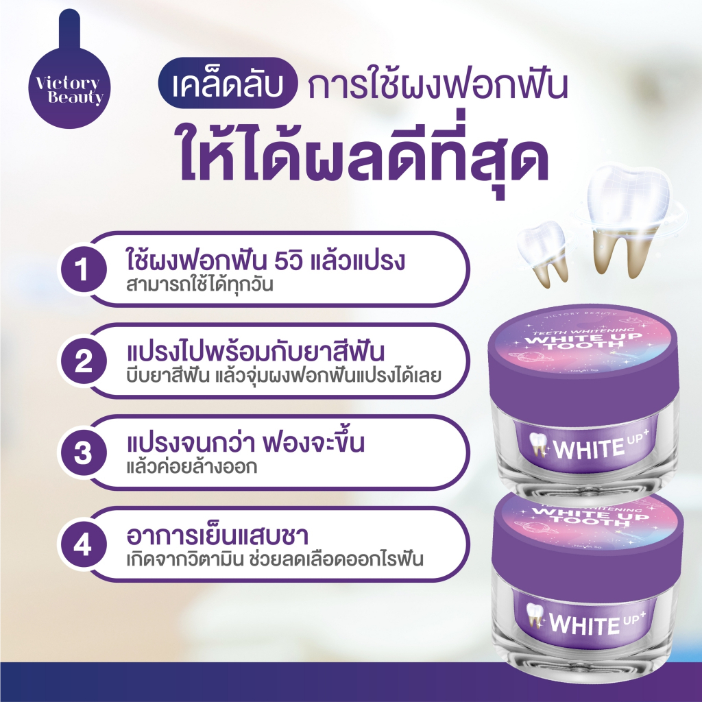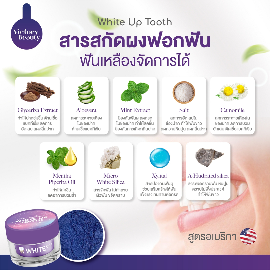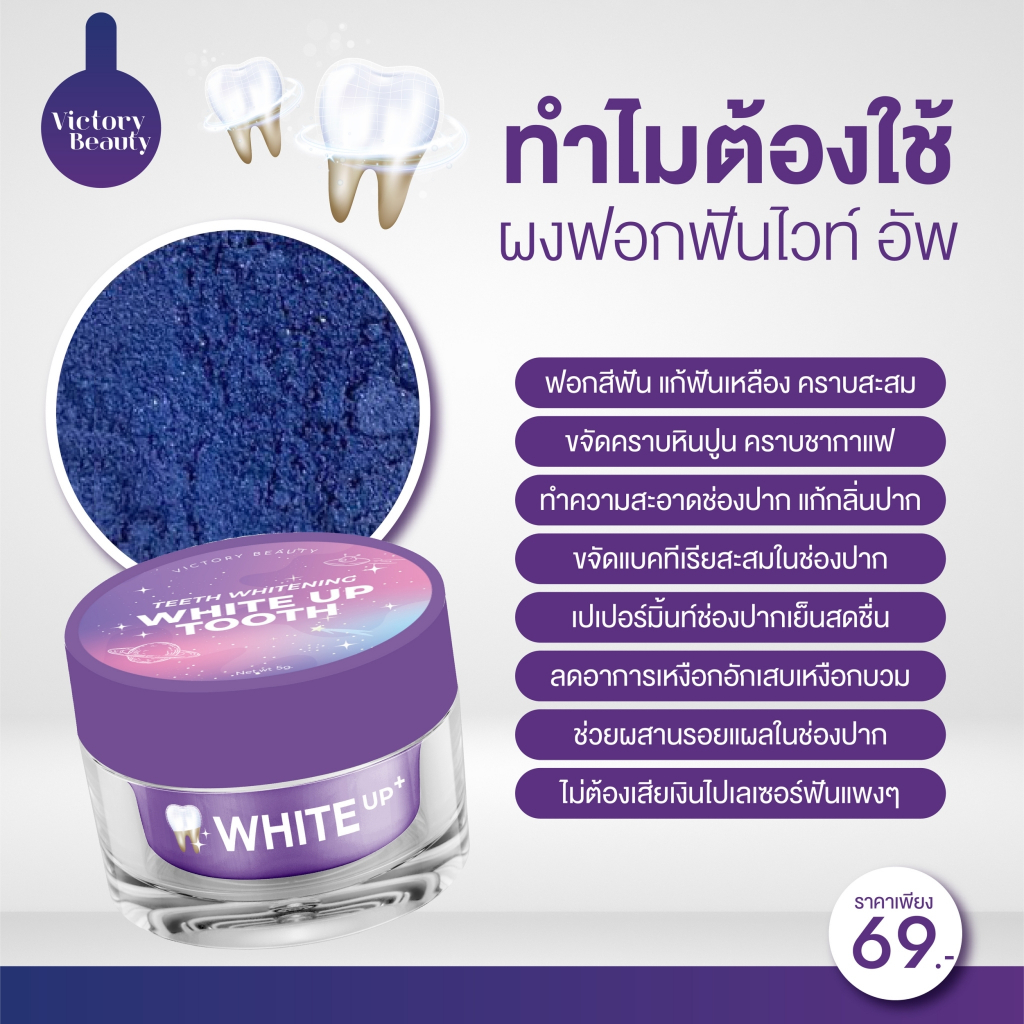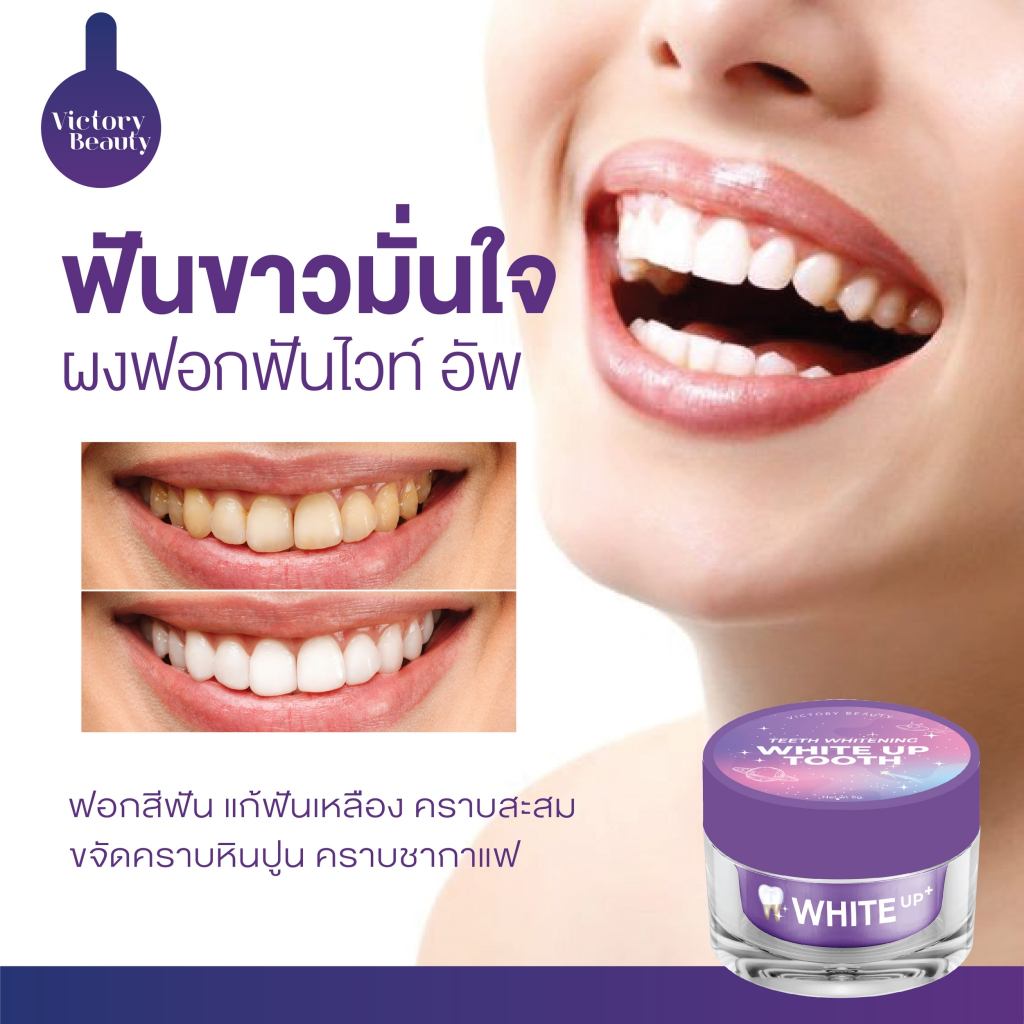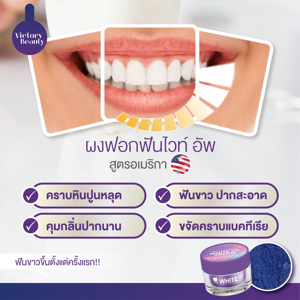 Victory Beauty 🌷💓 Teeth Whitening White Up Tooth ผงฟอกฟันขาวสูตรอเมริกา 69-. ไม่ขาวคืนเงิน 🦷👄 ขาวตั้แต่ ครั้งแรก ‼️ คราบ หินปูน คราบชากาแฟ เหลืองงมาก ขาวขึ้นแน่นอน • ช่วยให้ฟันขาวสะอาด • ลดคราบเหลือง คราบชา กาแฟ • ลดกลิ่นปาก กลิ่นสดชื่น • ทำความสะอาดช่องปากและฟัน วิธีใช้ เปิดฝา ใช